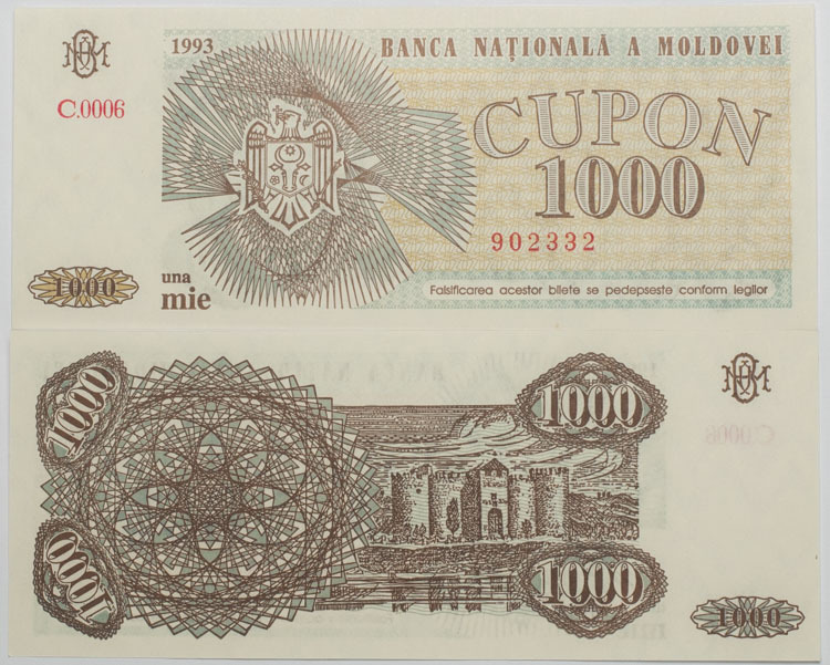 Купюра 1000 купонов Молдова 1993