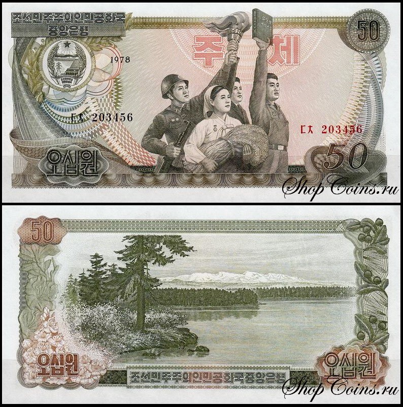 Корея Северная 50 вон 1978 (UNC Pick 21) Без печати