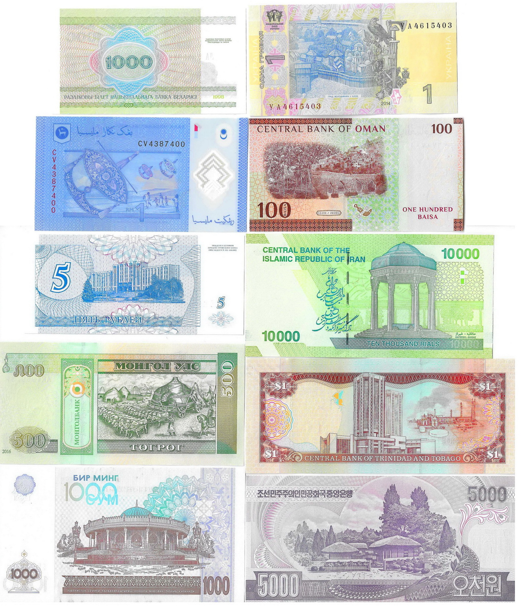 Северная Корея. Набор банкнот от 5 до 5000 вон (5 штук) 1998-2019 года.