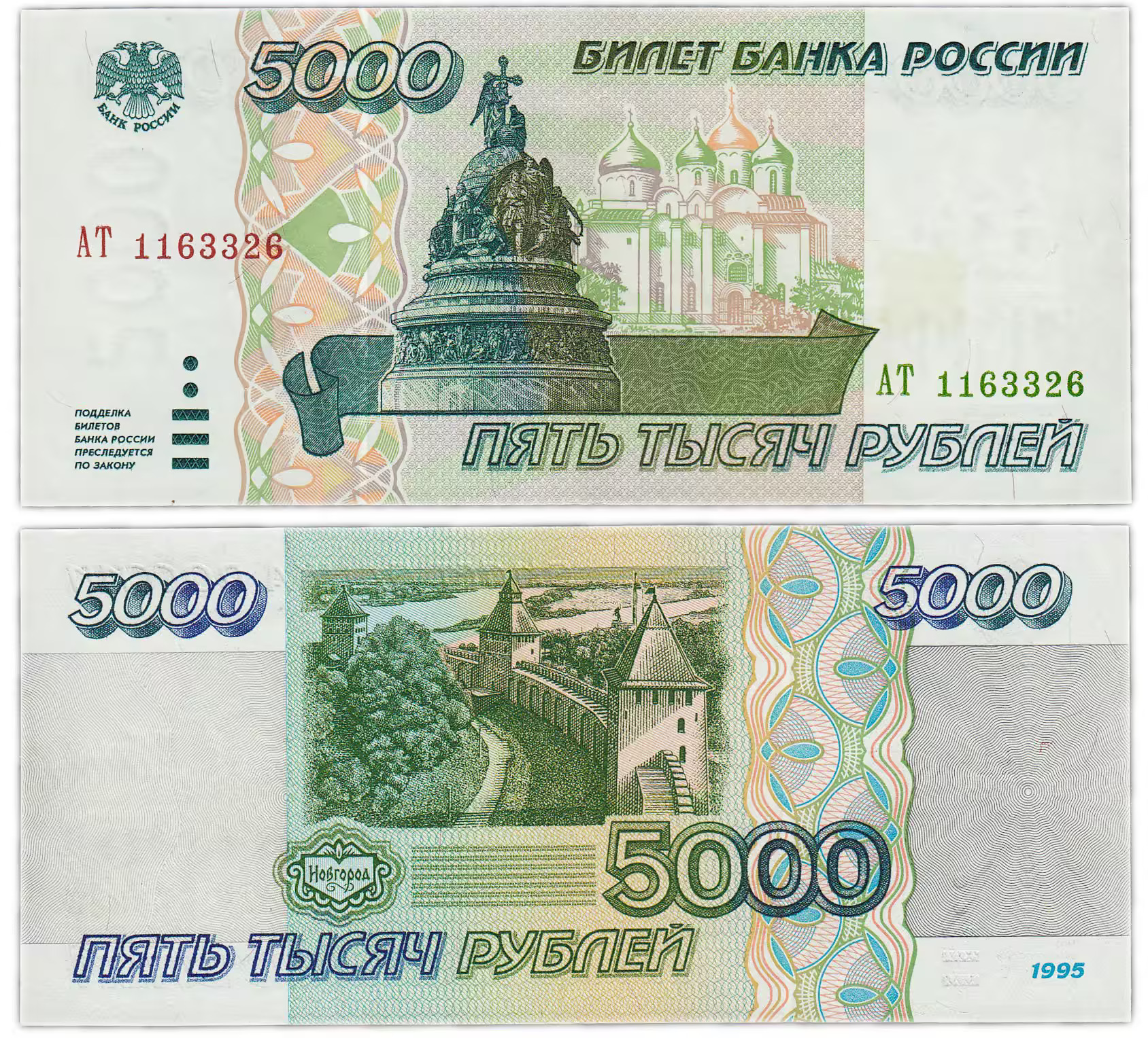 Банкнота 5000 рублей 1995 Россия бона/купюра/банкнота