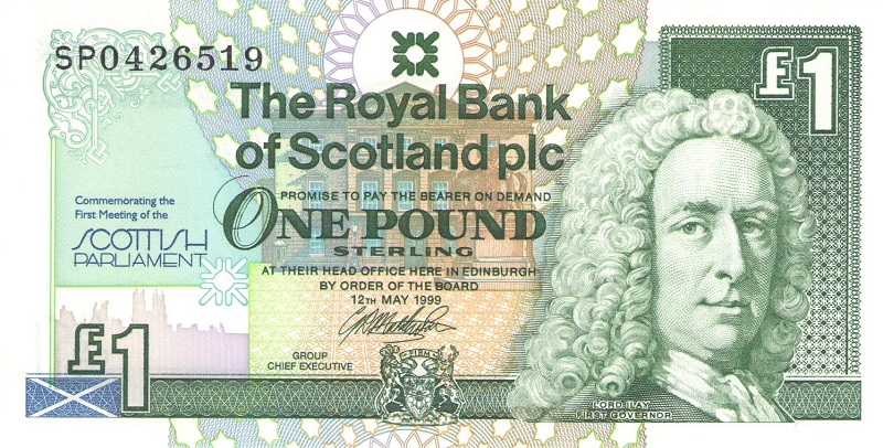 Банкнота номиналом 1 фунт. Шотландия. 1999 год