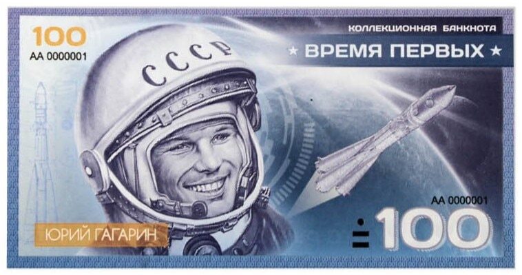 Банкнота 100 рублей 2021 года Юрий Гагарин Россия