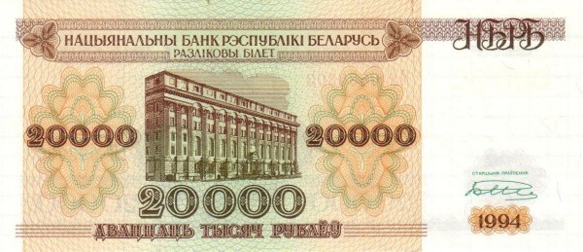 Белоруссия 20000 рублей 1994 Здание нац.банка в Минске UNC