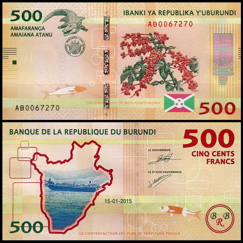 Бурунди 500 франков 2015 (UNC Pick 50)
