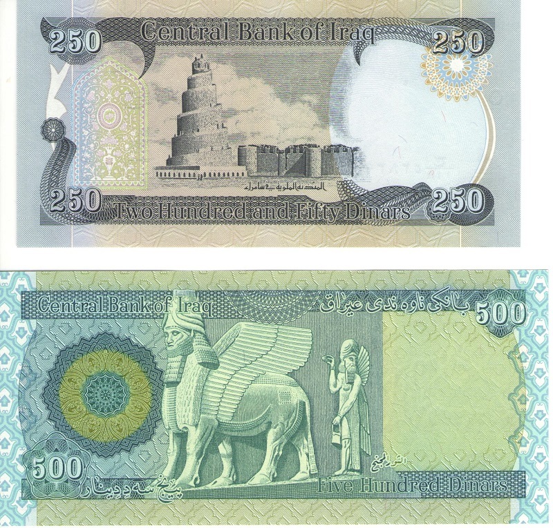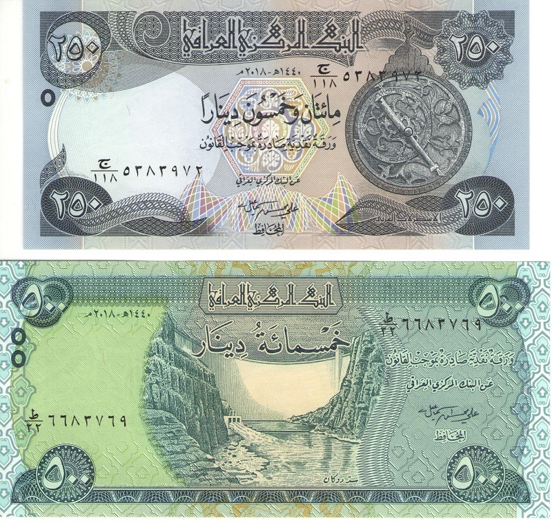 Набор из 2-х банкнот номиналом 250 и 500 динаров. Ирак. 2018 год