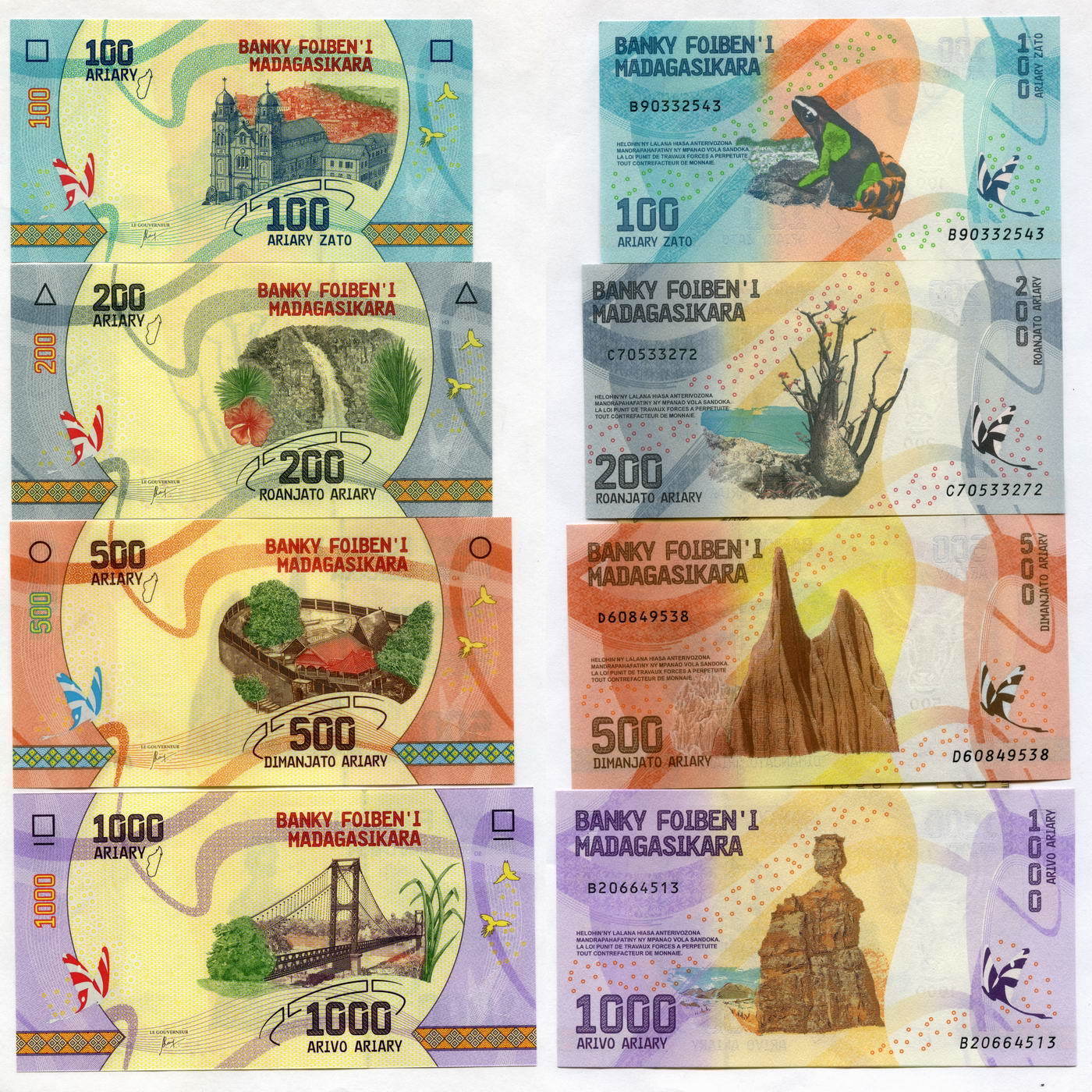 Комплект Мадагаскар 100, 200, 500 и 1000 ариари 2017 г. Состояние ПРЕСС, unc
