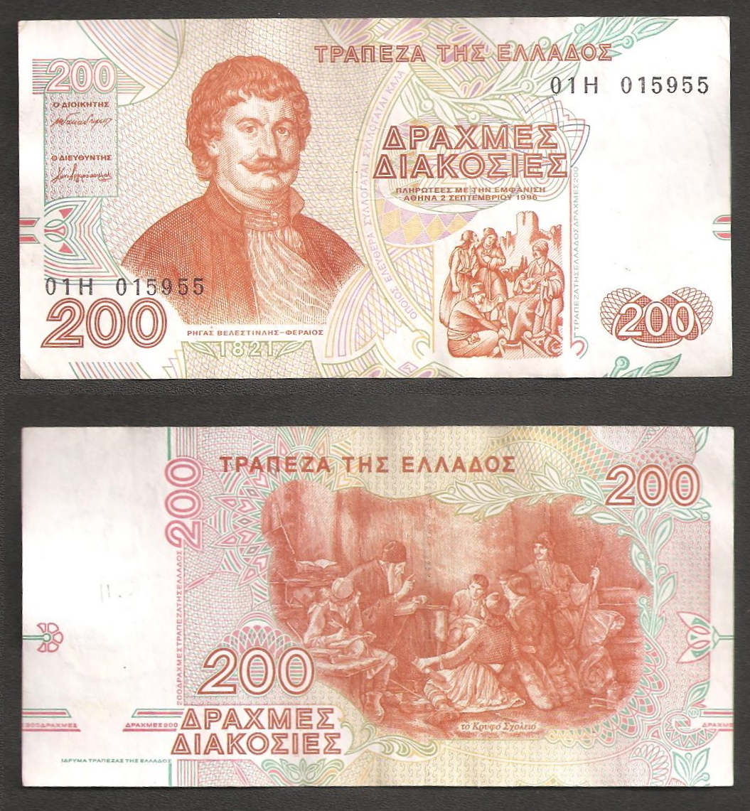 Иностранная банкнота из 1 шт. - 200 драхм 1996 год, ГРЕЦИЯ. - БОНЫ, БАНКНОТЫ, БОНИСТИКА.