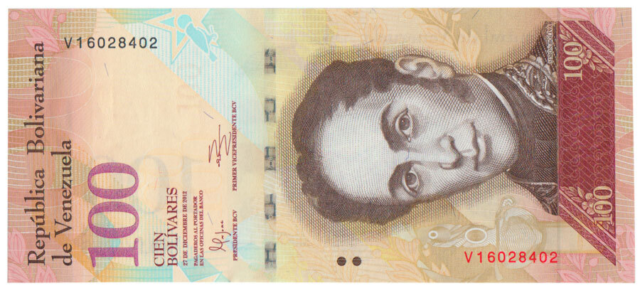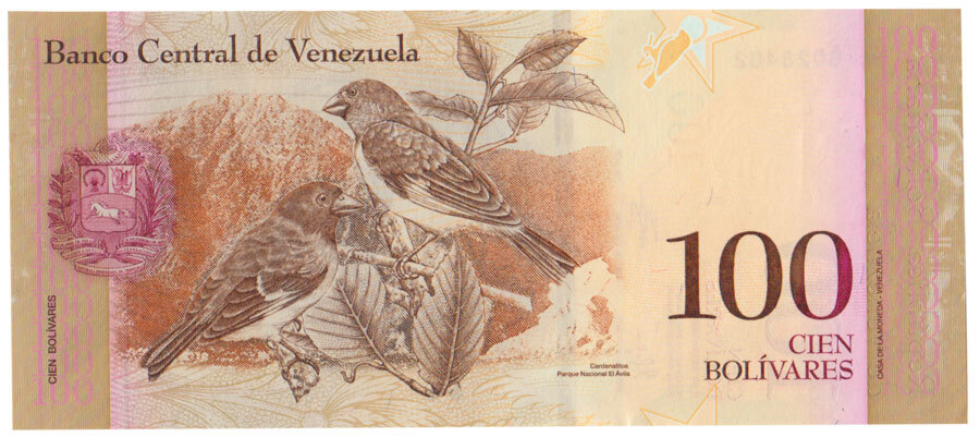 Банкнота Венесуэла 2012 год 100 боливаров "Портрет Симона Боливара. Красные Венесуэльские Чижи из