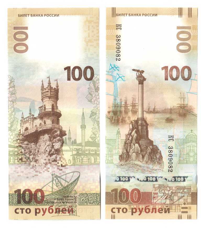 Крым и Севастополь Памятная банкнота 100 руб 2015 г UNC Официальный выпуск!! серия КС