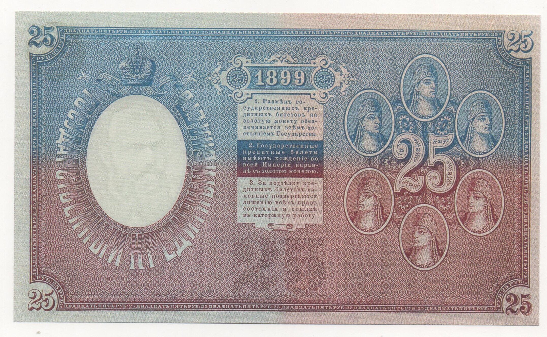 Банкнота 25 рублей 1899 года Плеске Михеев Россия Копия