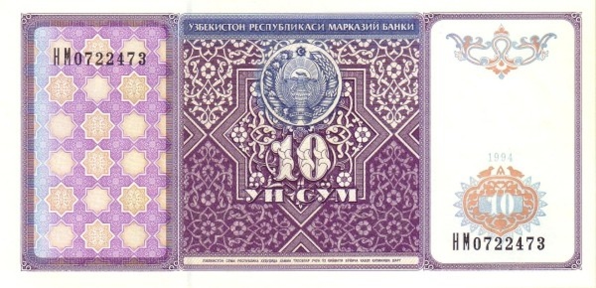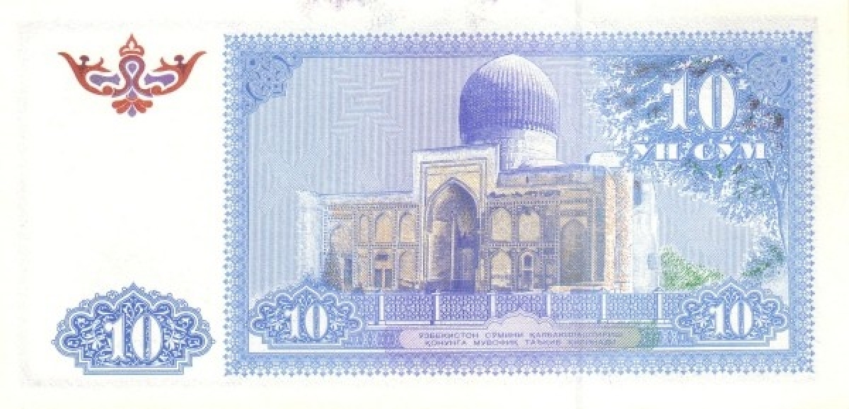 Узбекистан 10 сум 1994 г Могила Тамерлана в Самарканде UNC