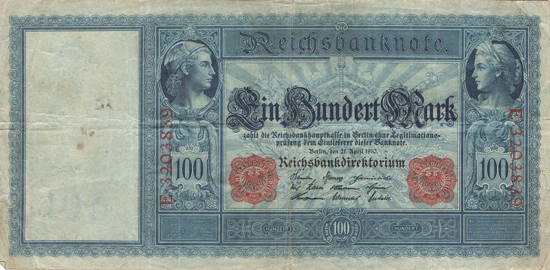 Банкнота номиналом 100 марок. Германия. 1910 год