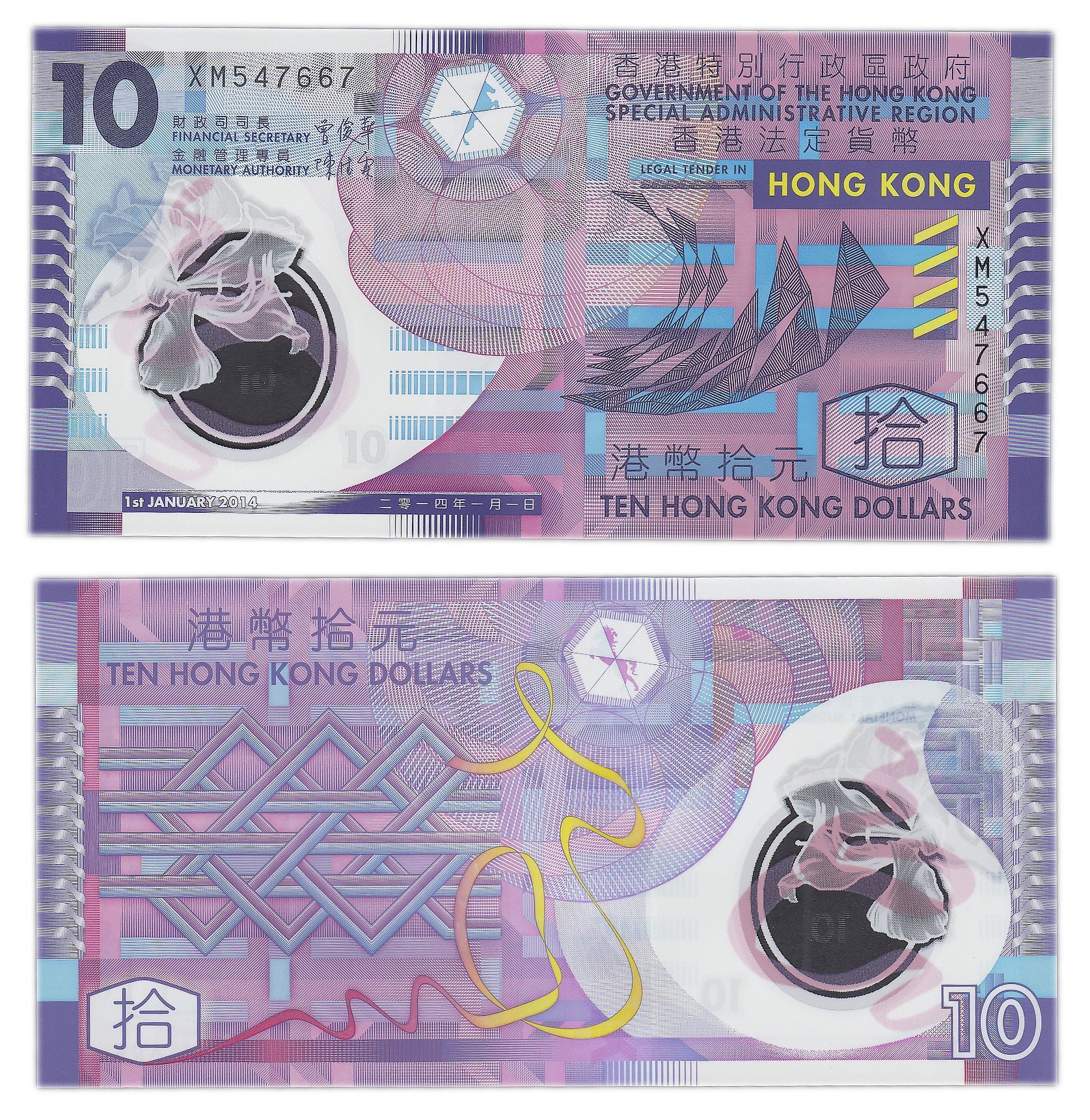 Гонконг 10 долларов 2009-2014 г. Goverment of Hong Kong.