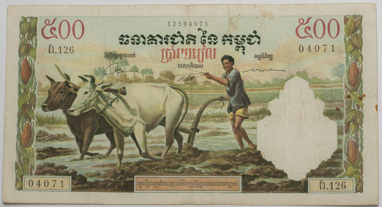 Купюра 500 риэлей Камбоджа 1958-1972 Сельское хозяйство