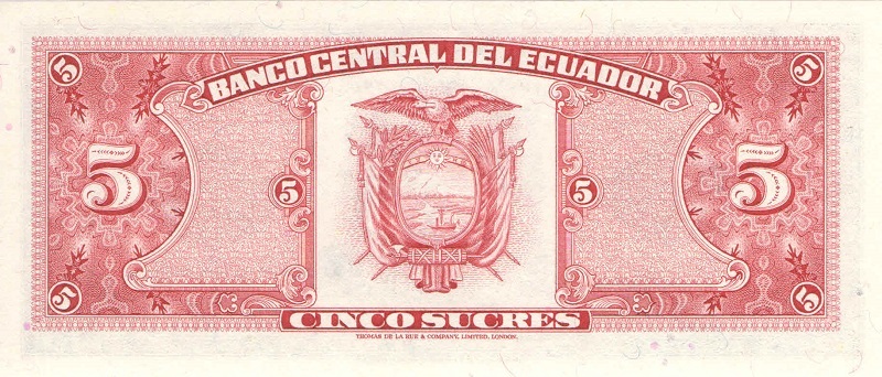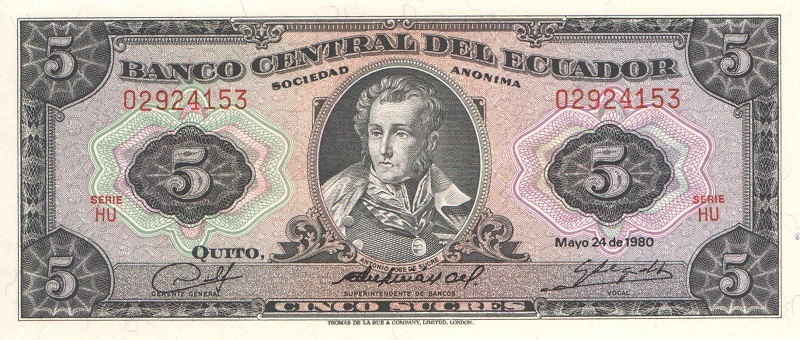 Банкнота номиналом 5 сукре. Эквадор. 1980 год