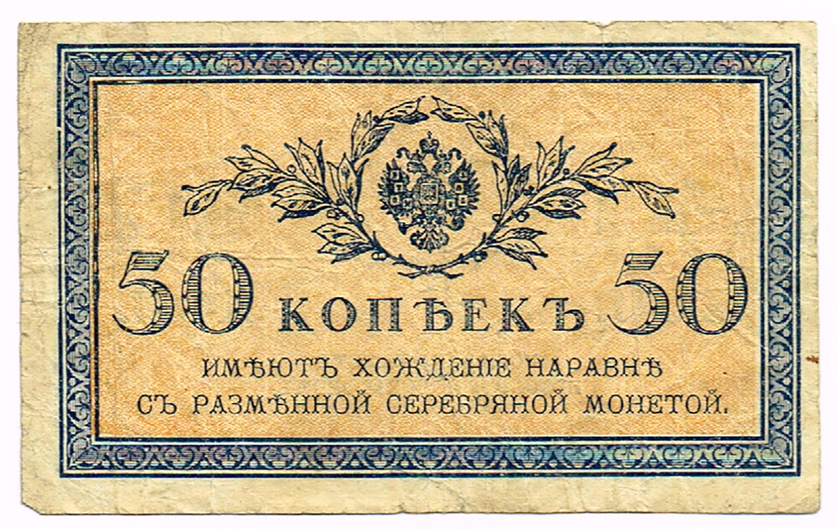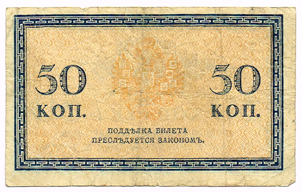 Банкнота 50 копеек 1915 года. Казначейский разменный знак Российской Империи VF - 5