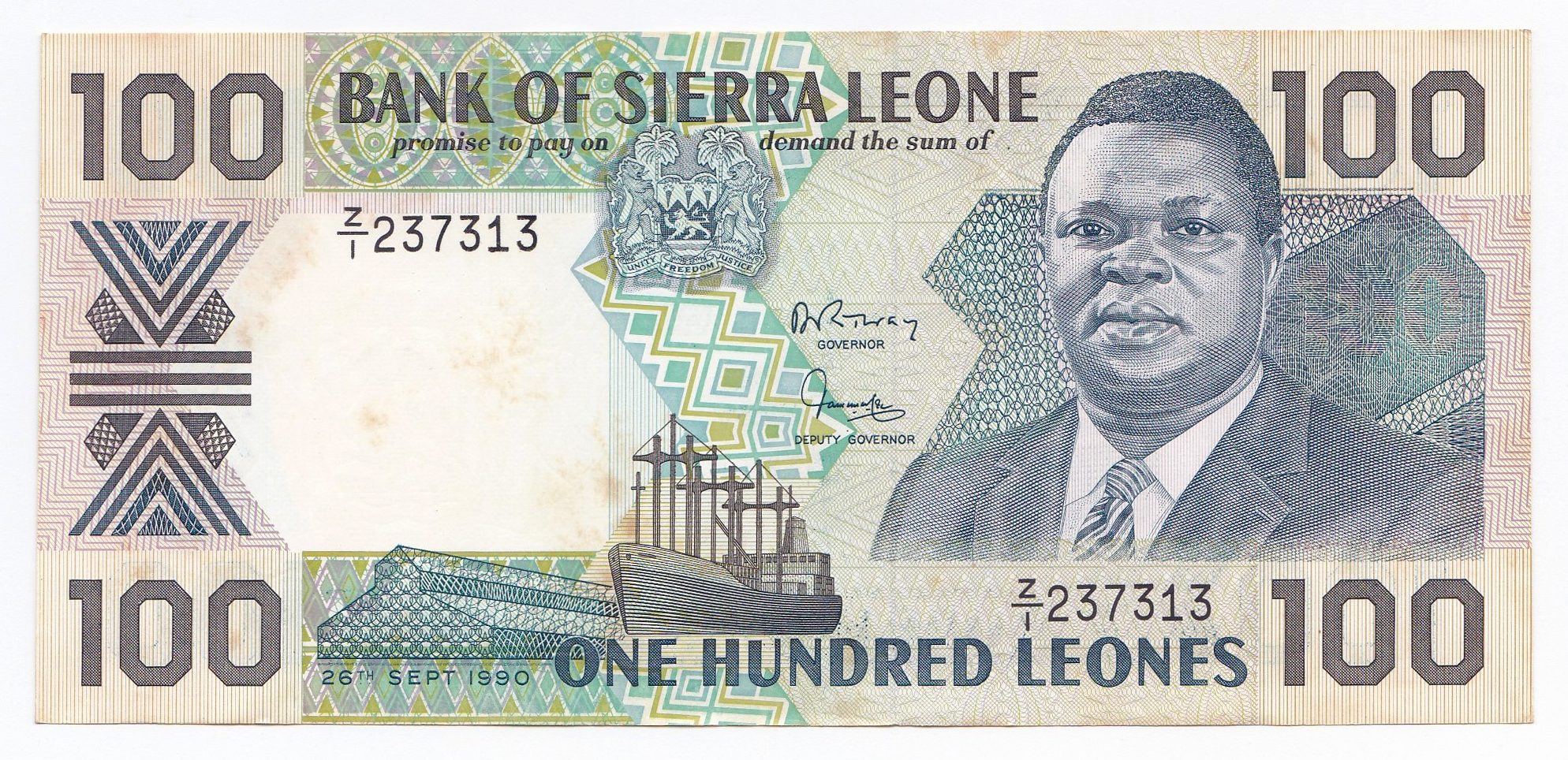 Сьерра-Леоне, 100 леоне 1990, P-18c, aUNC, серия замещения (Z/1)