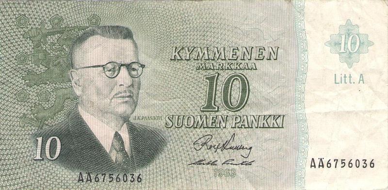 Банкнота номиналом 10 марок. Финляндия. 1963 год