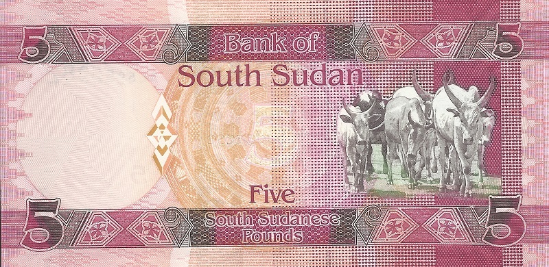 Банкнота номиналом 5 фунтов. Южный Судан. 2015 год