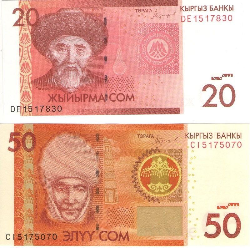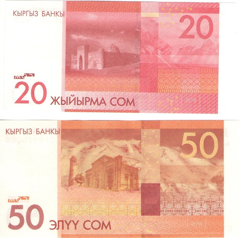 Набор банкнот номиналом 20 и 50 сомов. Киргизия. 2016 год