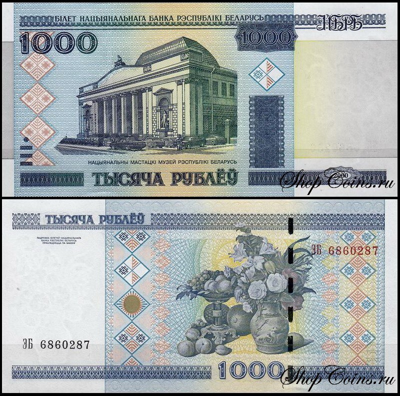 Беларусь 1000 рублей 2000 (UNC Pick 28b) Модификация 2011 года