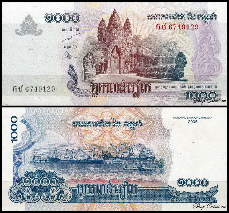 Камбоджа 1000 риелей 2005-2007 (UNC Pick 58) Обзор