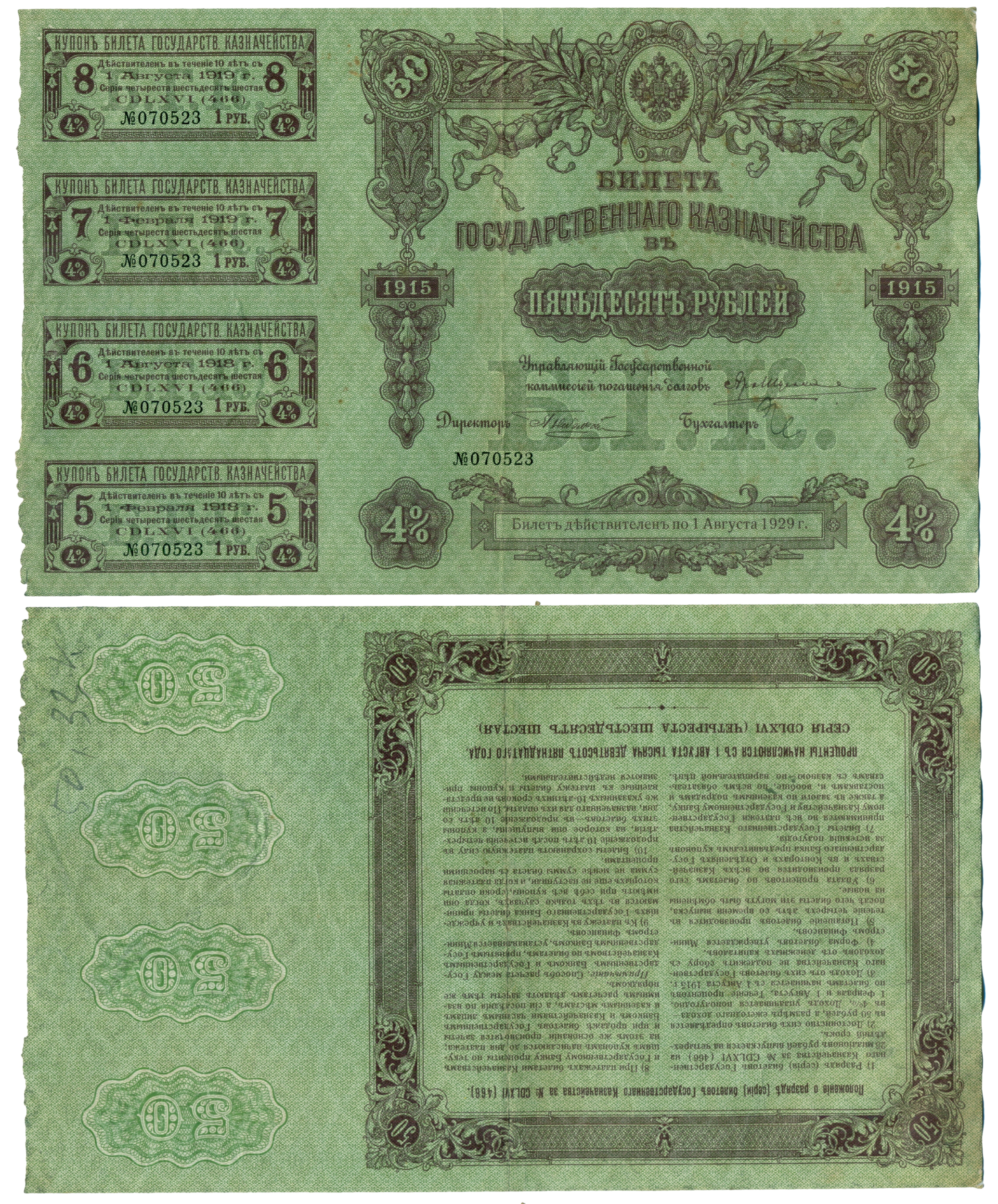 50 рублей 1915 Билет Государственного казначейства