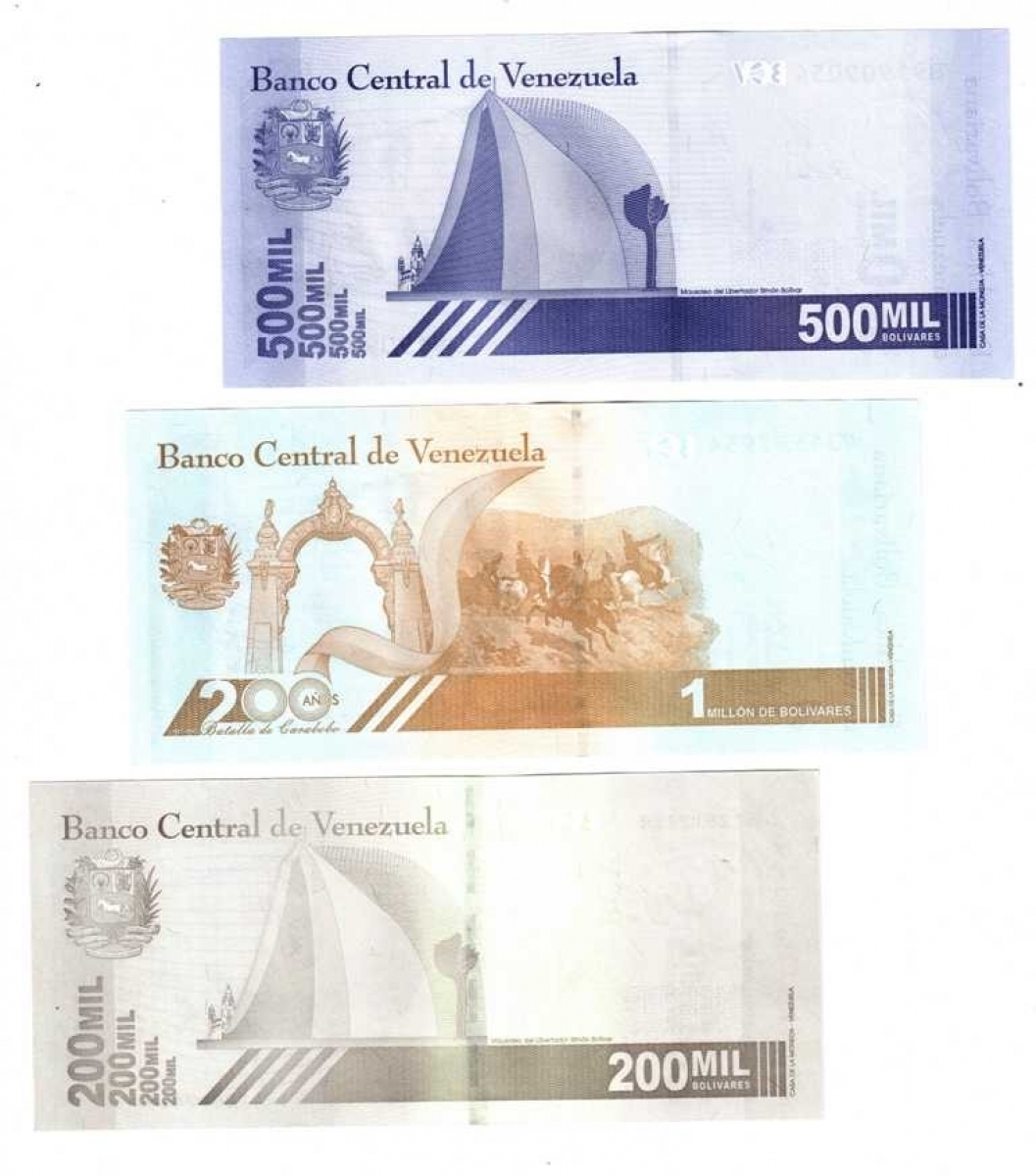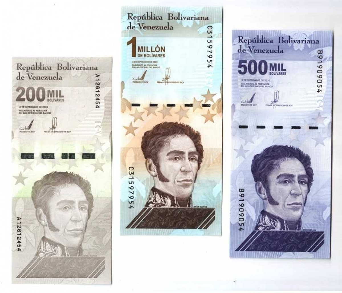 Венесуэла Набор новинок 1000000+200000+500000 боливаров 2020 г. Симон Боливар UNC Гознак