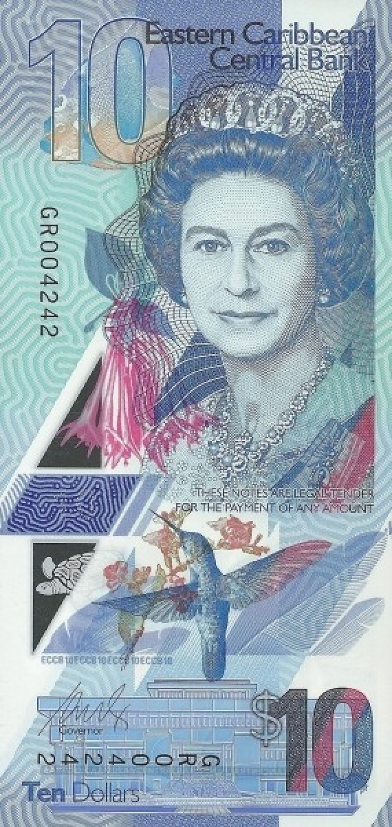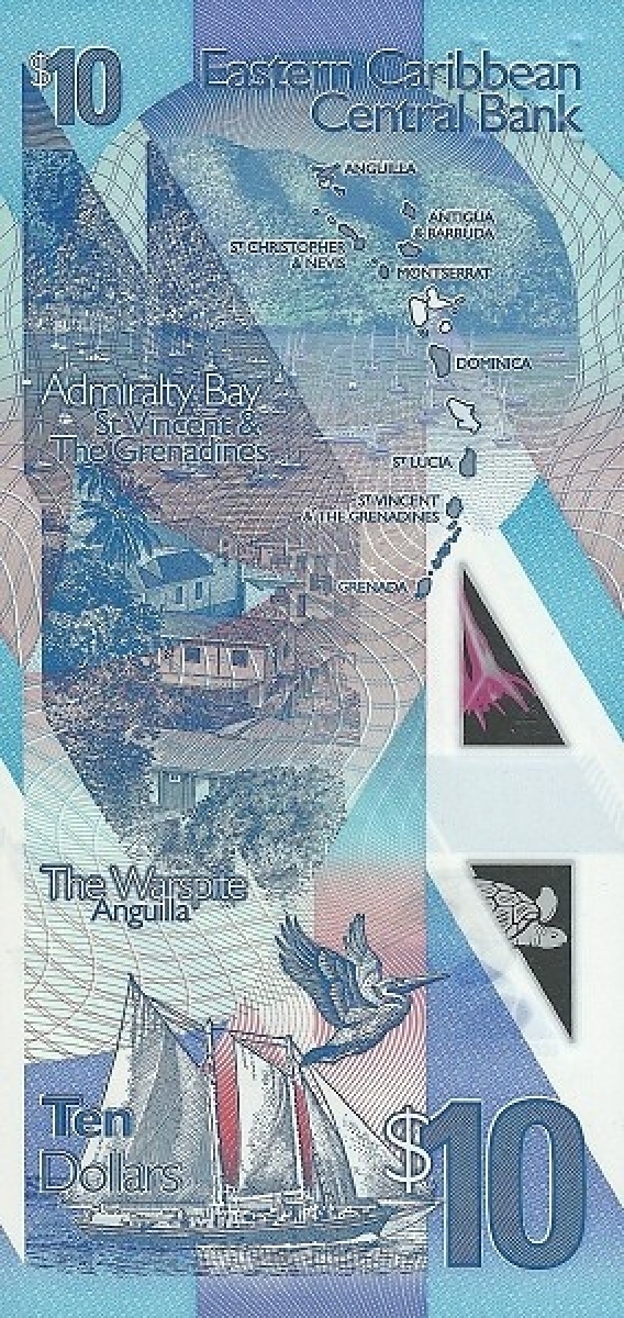 Восточные Карибы 10 долларов 2019 Адмиралтейский Залив UNC Пластиковая