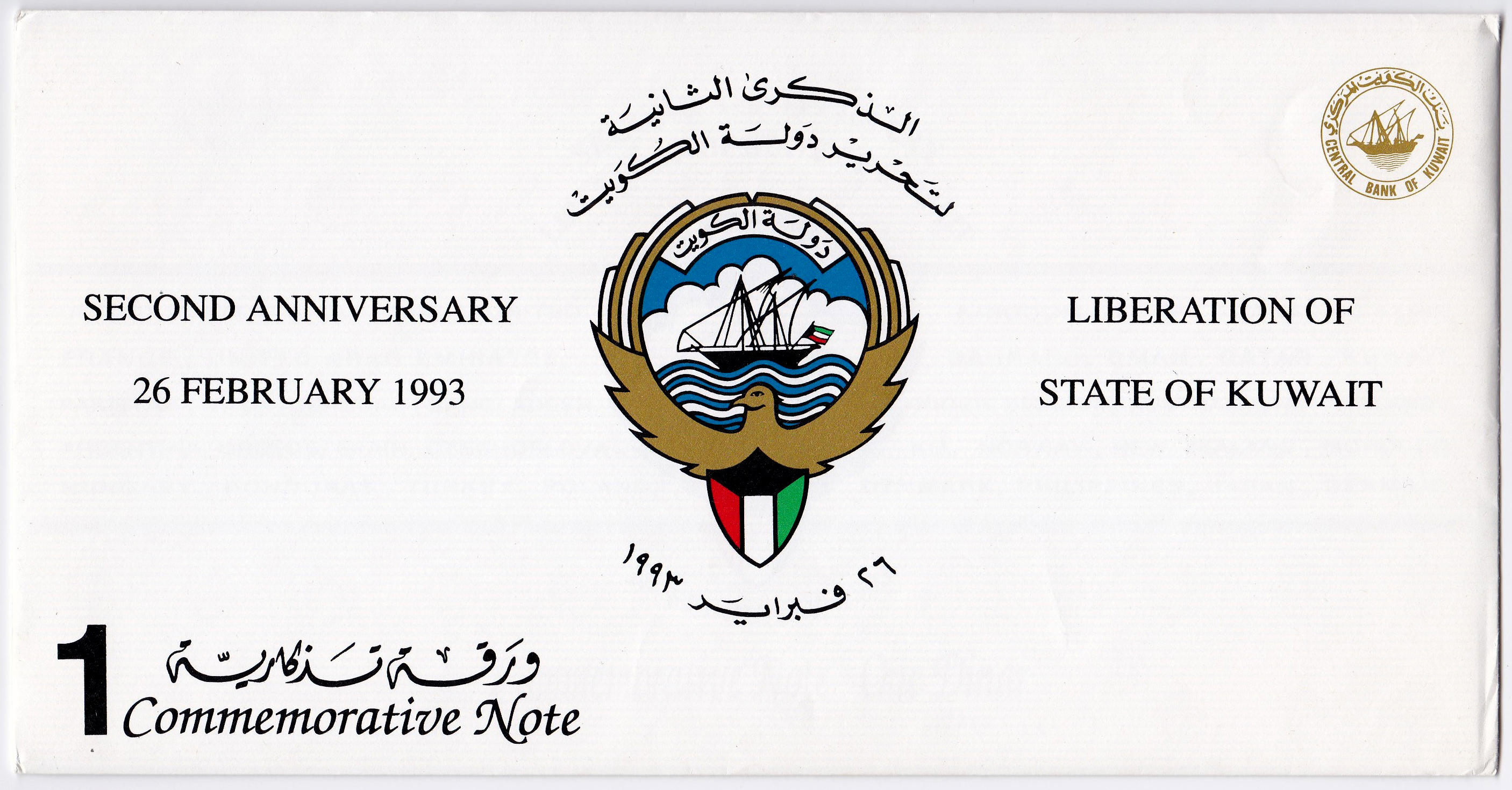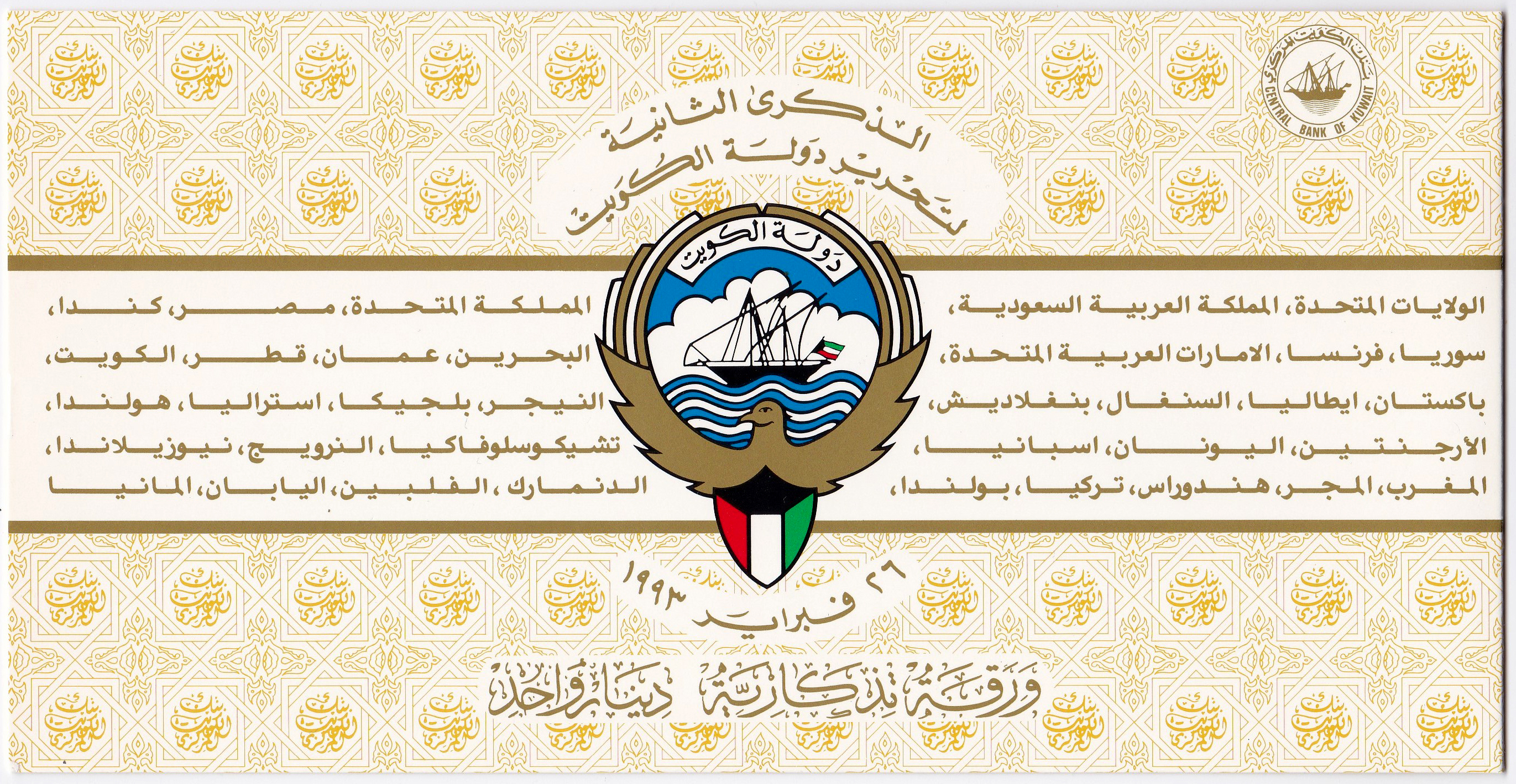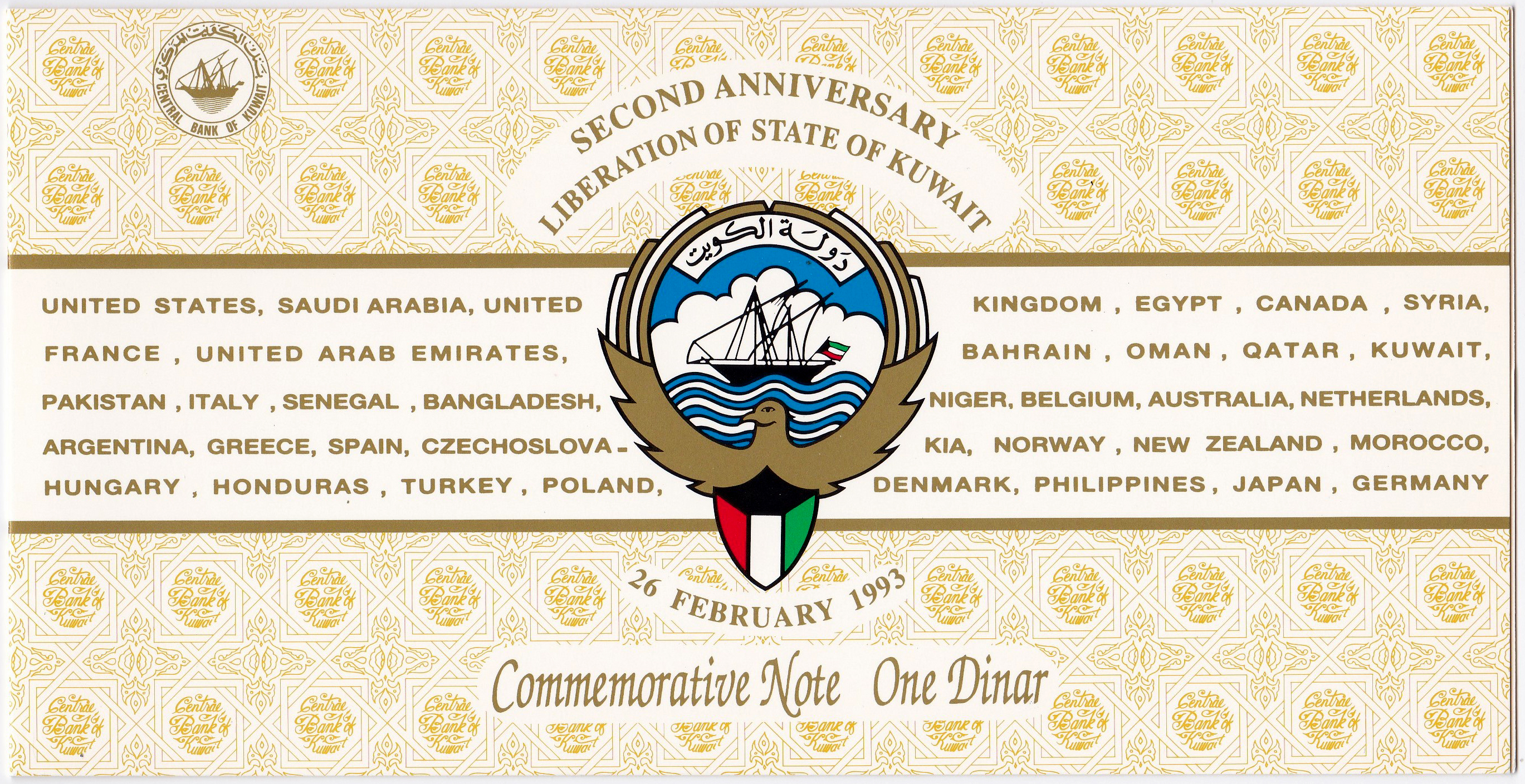 Кувейт, 1 динар 1993, P-CS1, UNC, Памятные, в буклете, 2-ая годовщина независимости