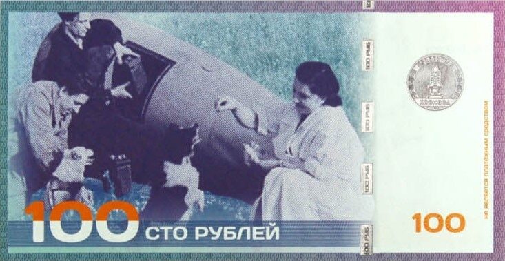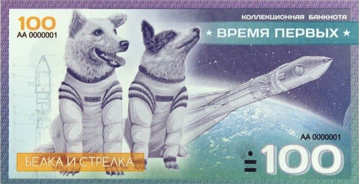 Банкнота 100 рублей 2021 года Белка и Стрелка Россия