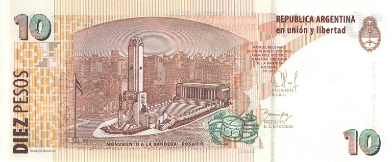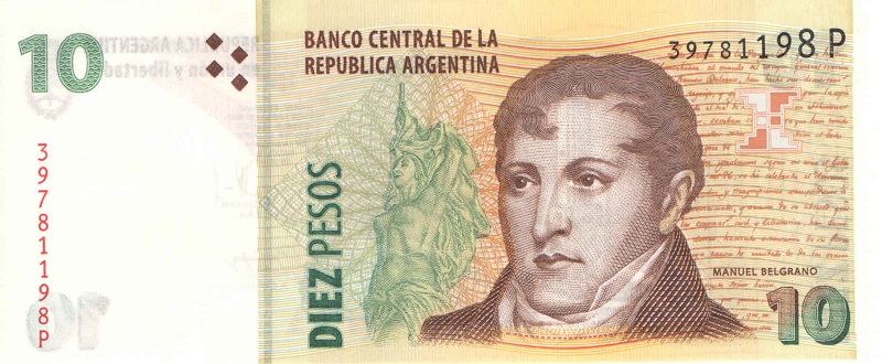 Банкнота номиналом 10 песо. Аргентина. 2003 год
