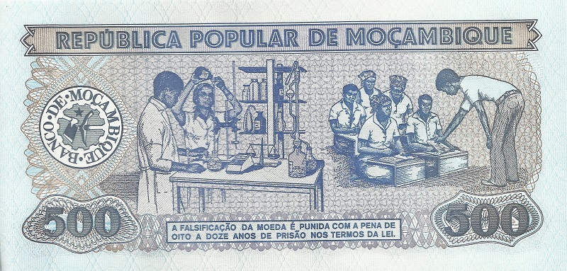 Банкнота номиналом 500 эскудо. Мозамбик. 1989 год