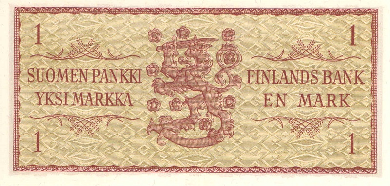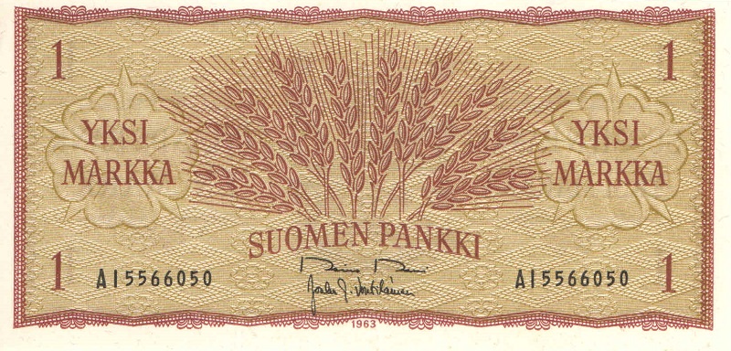 Банкнота номиналом 1 марка. Финляндия (тип2). 1963 год