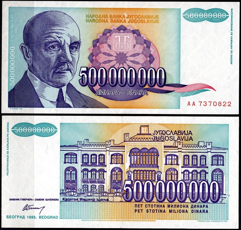 Югославия 500 000 000 динар 1993 (UNC Pick 134)