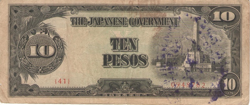 Банкнота номиналом 10 песо. Филиппины. Японская Оккупация. 1943 год