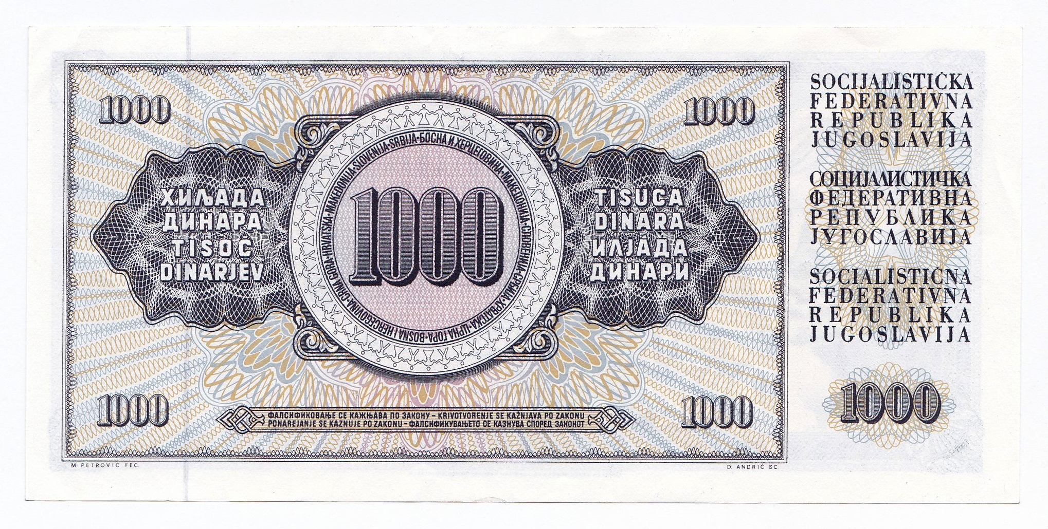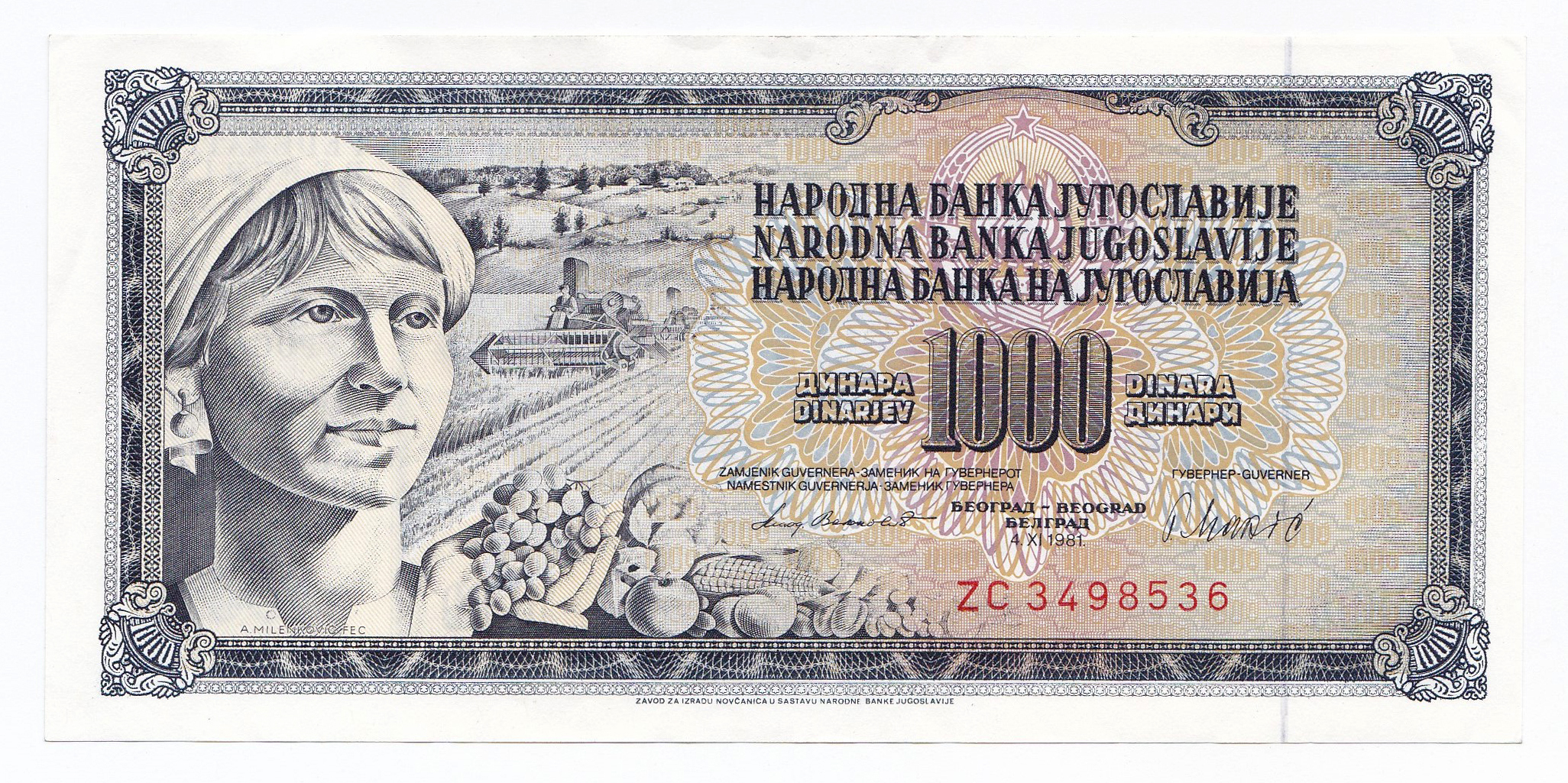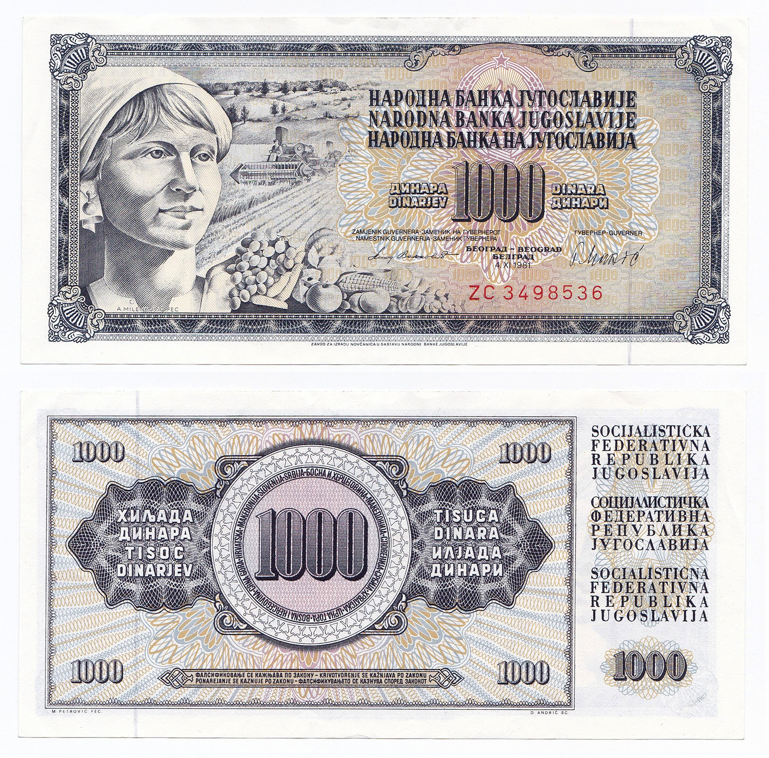 Югославия, 1000 динар 1981, P-92dr, aXF, серия замещения (ZC)