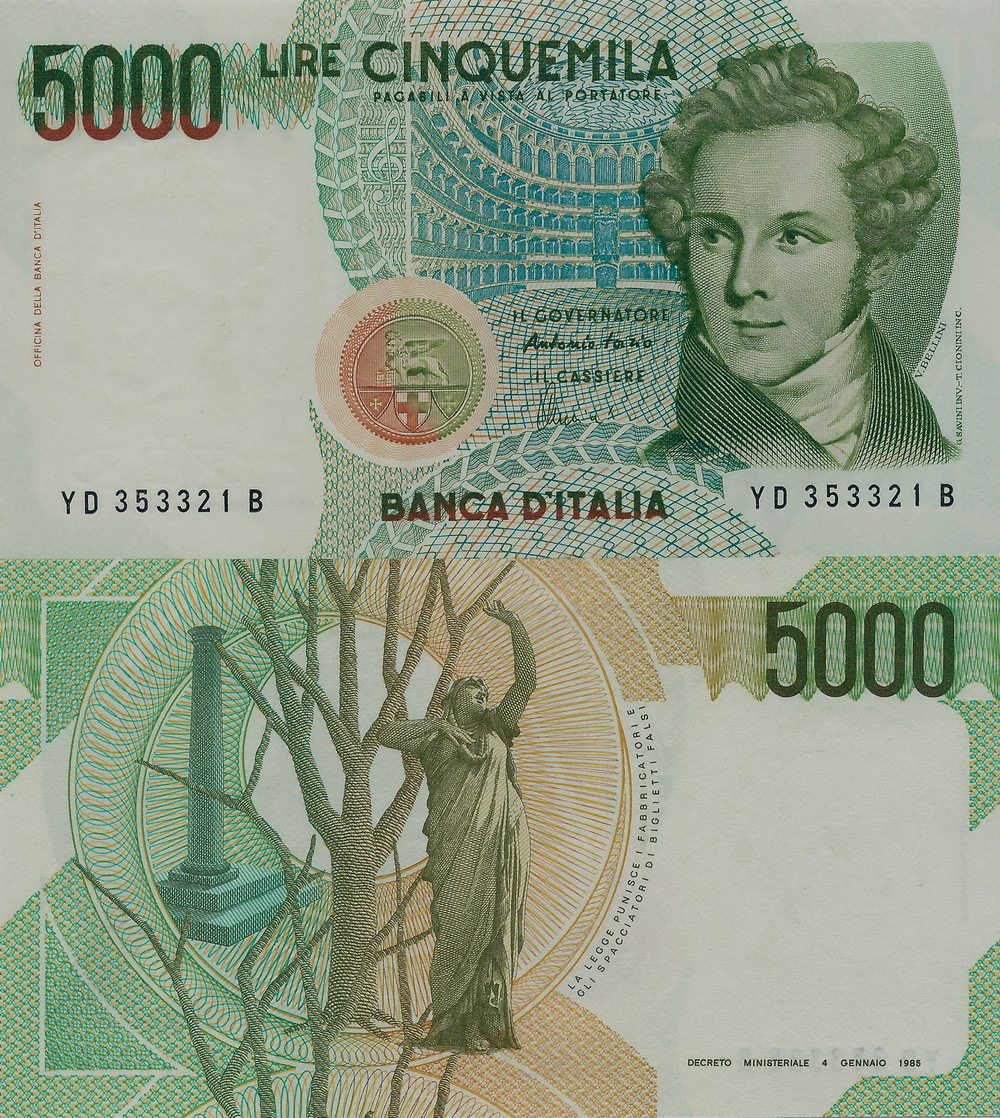 Италия 5000 лир 1985 г. (Pick 111c) UNC