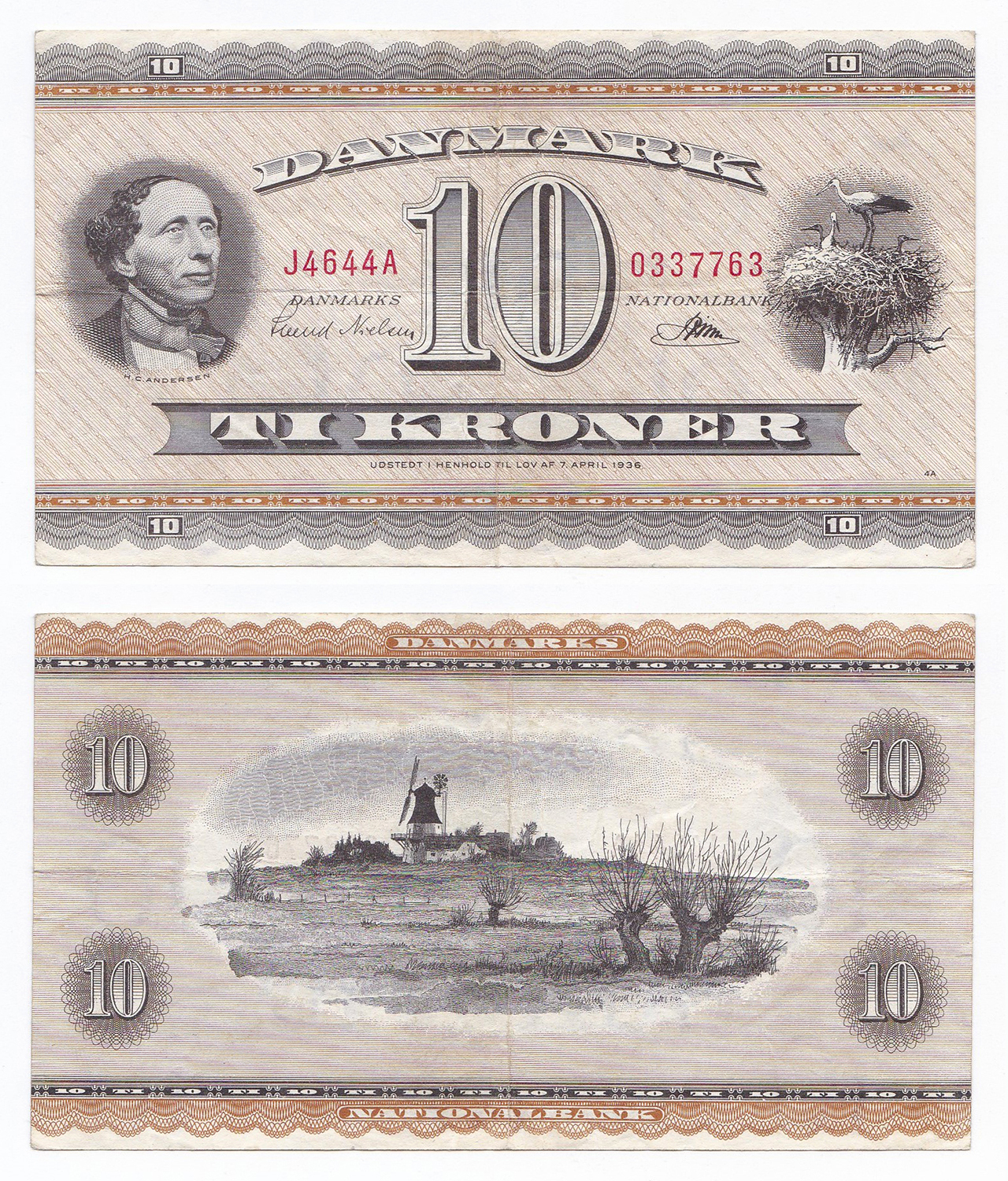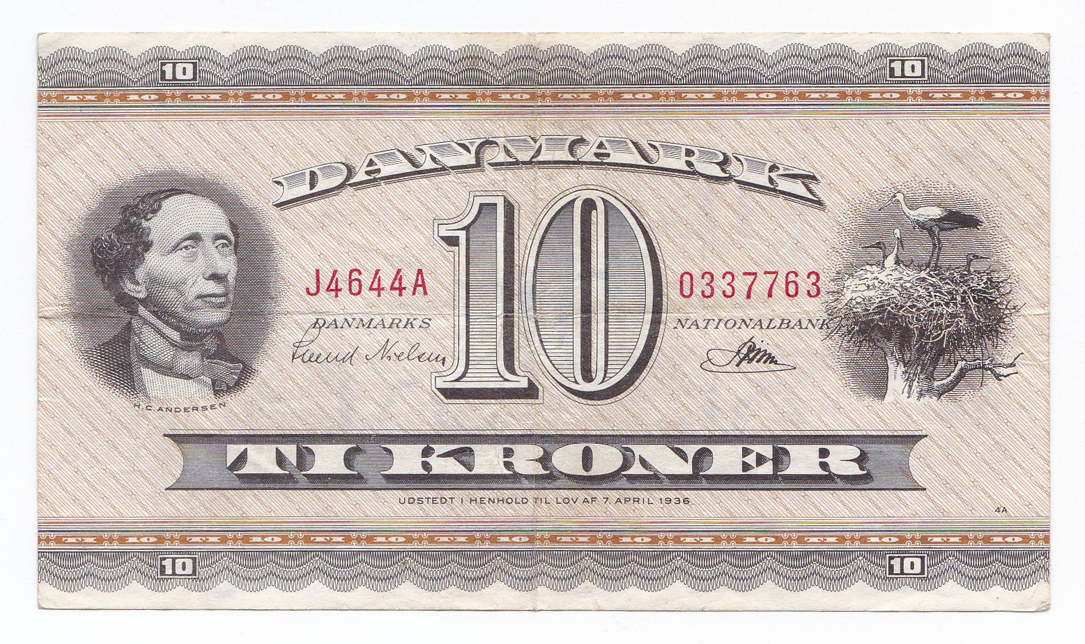 Дания, 10 крон 1964, P-44x, VF, серия J4