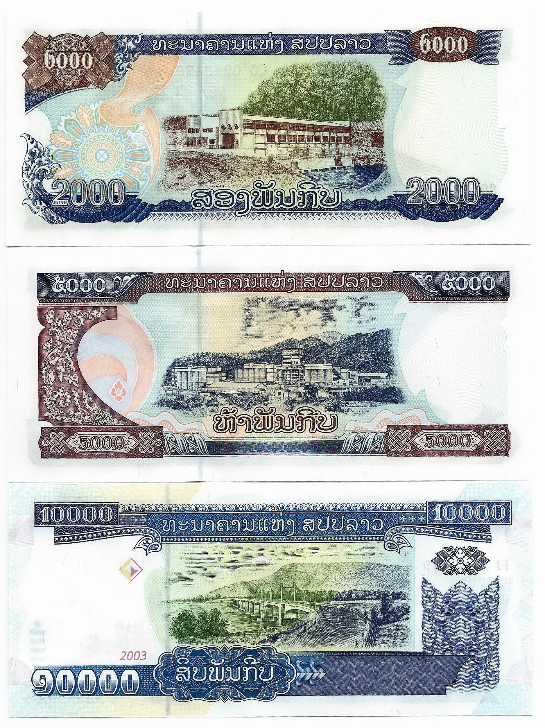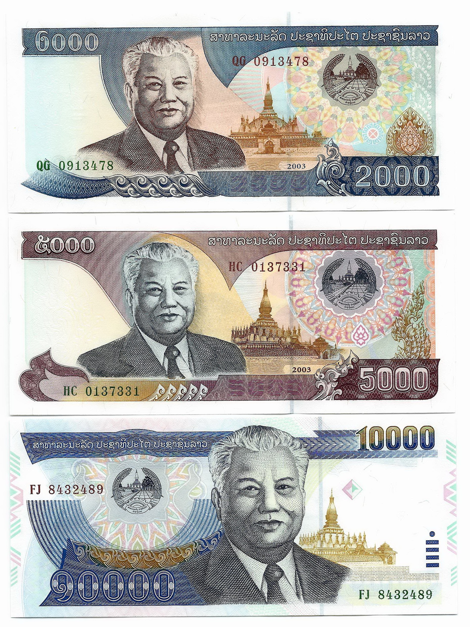 Лаос набор из 3- х банкнот 2003 гг. "2000, 5000 и 10000 кип" UNC