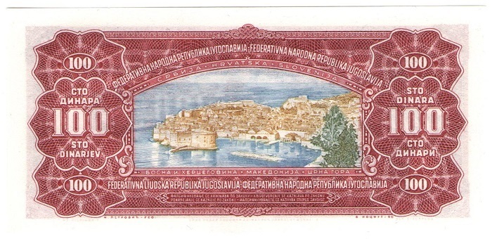 Банкнота номиналом 100 динаров 1955 года. Югославия