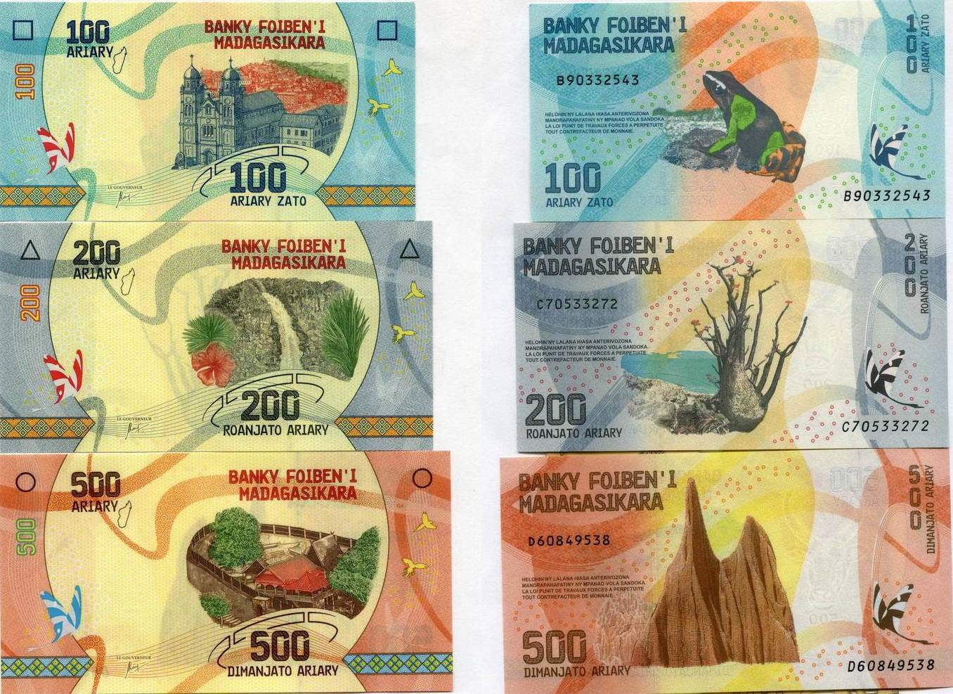 Комплект Мадагаскар 100, 200 и 500 ариари 2017 г. Состояние ПРЕСС, unc