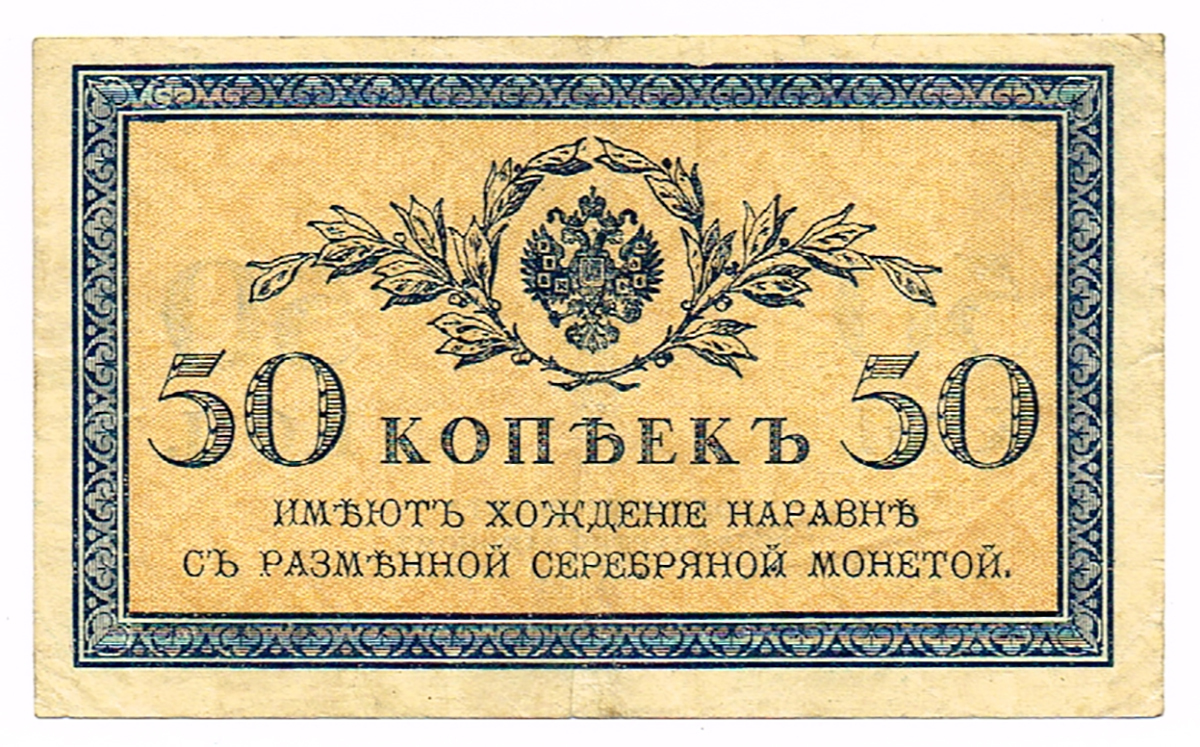 Банкнота 50 копеек 1915 года. Казначейский разменный знак Российской Империи VF - 1