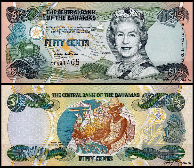 Багамские острова 1/2 доллара 2001 (UNC Pick 68)