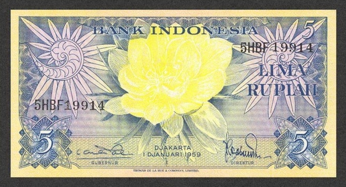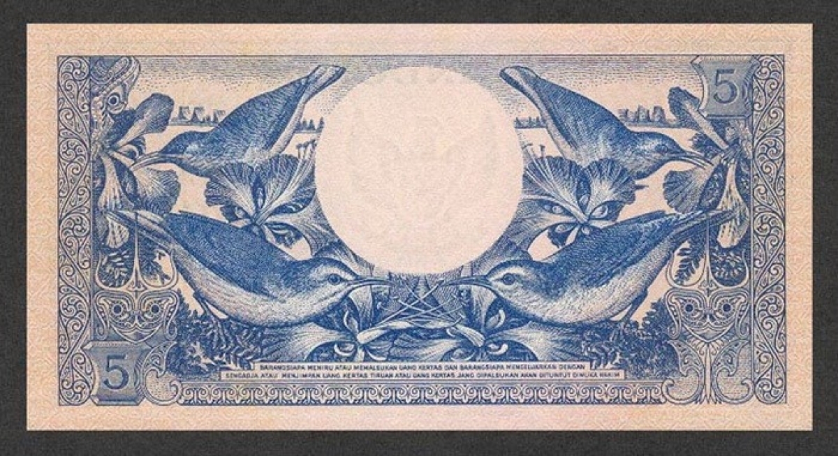 Индонезия 5 рупий 1959 г Птицы - нектарницы UNC