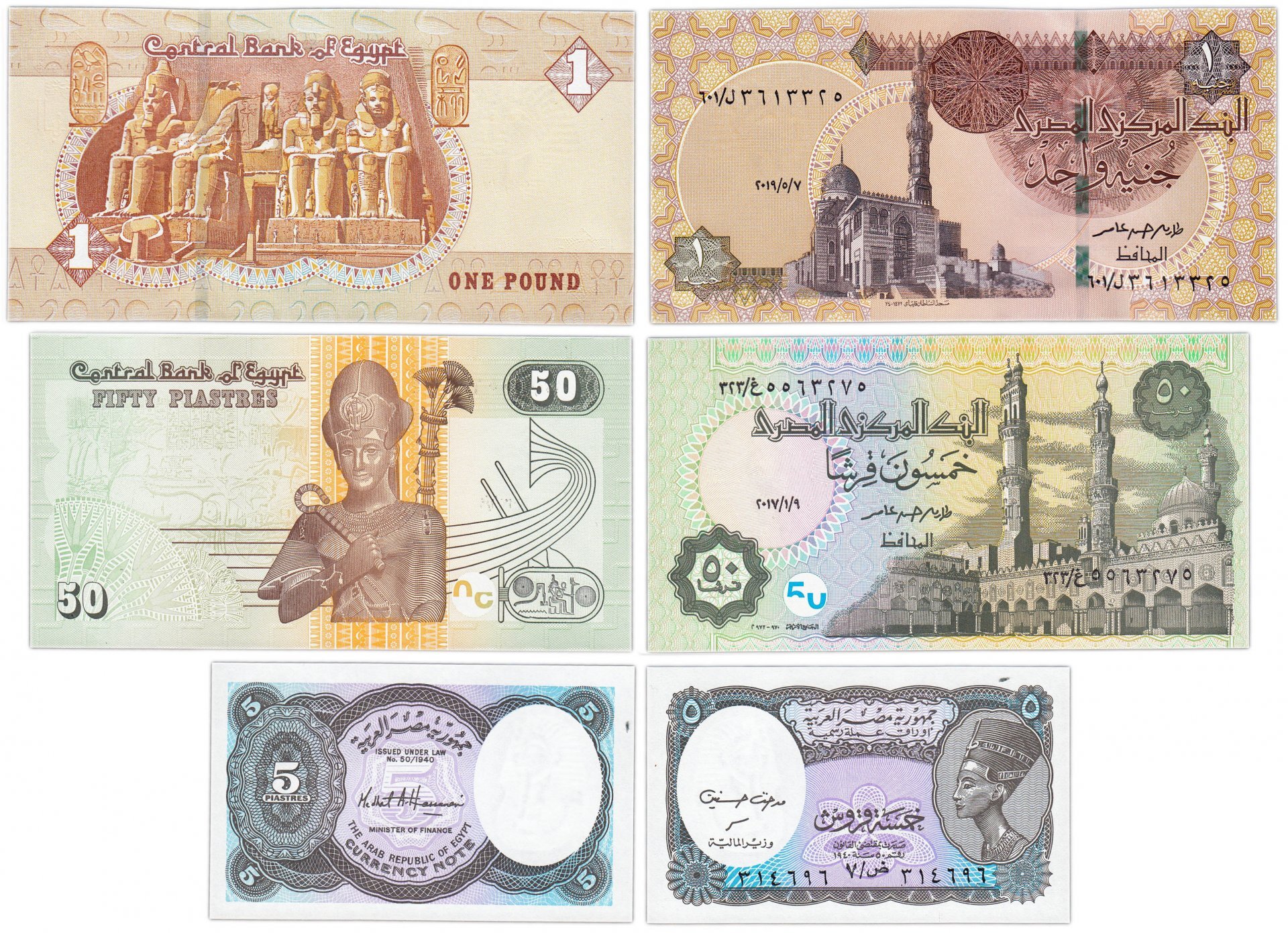 Египет набор банкнот 3 штук и 1999-2019 года 5, 50 пиастр, 1 фунт
