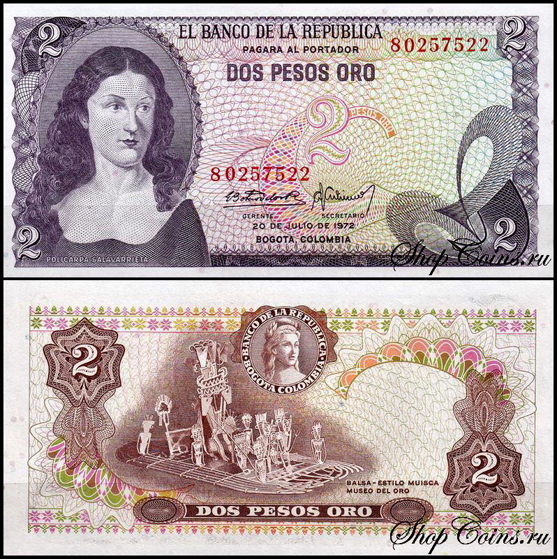 Колумбия 2 песо 1972-1977 (UNC Pick 413)