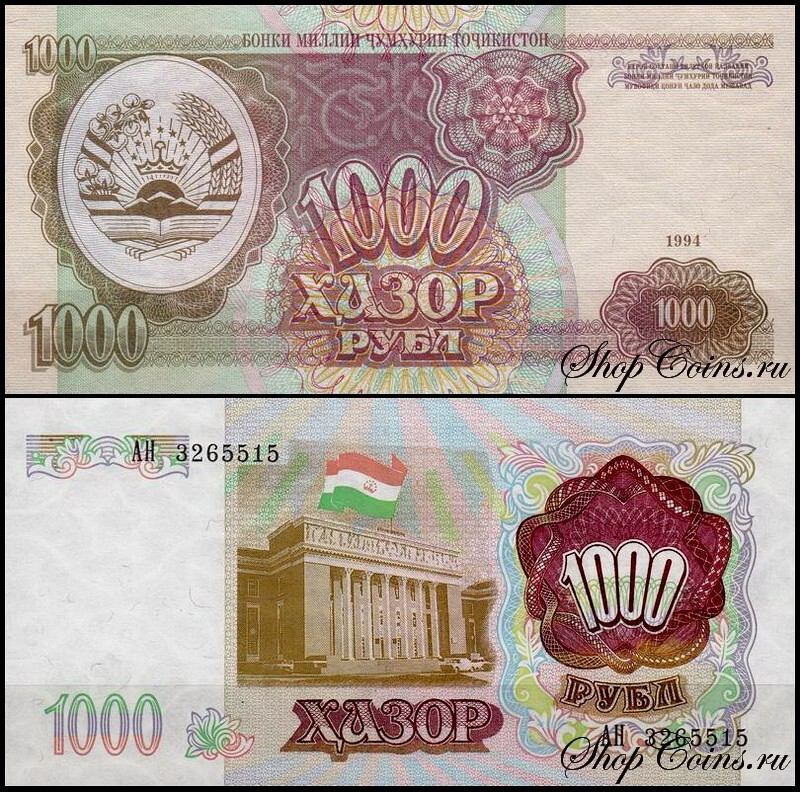 Таджикистан 1000 рубл 1994 (UNC Pick 9)