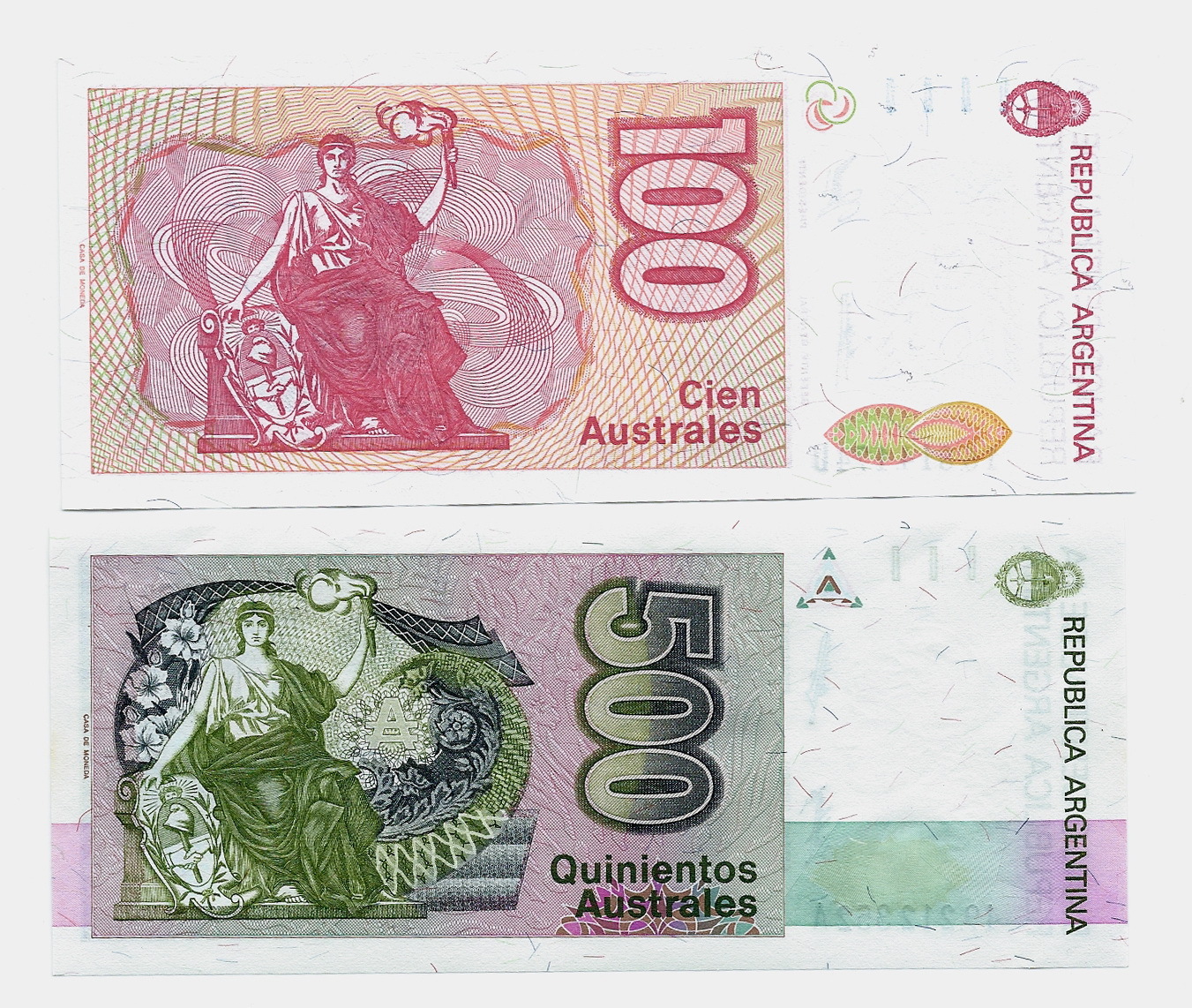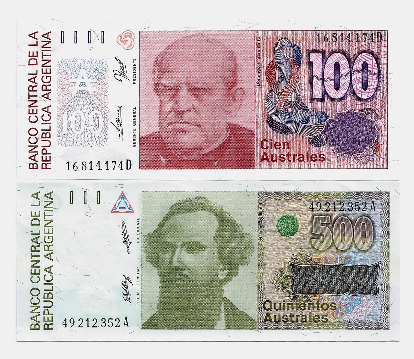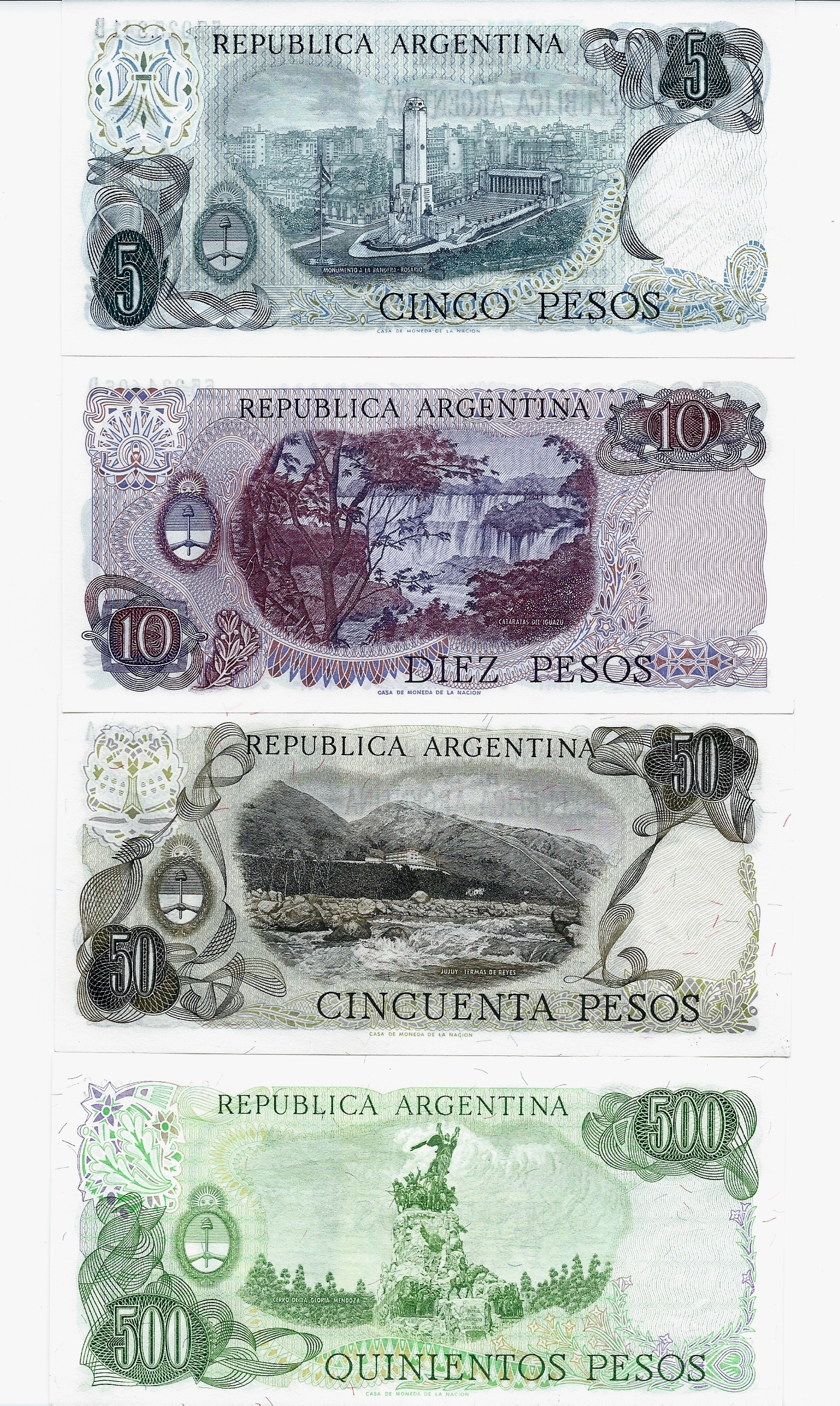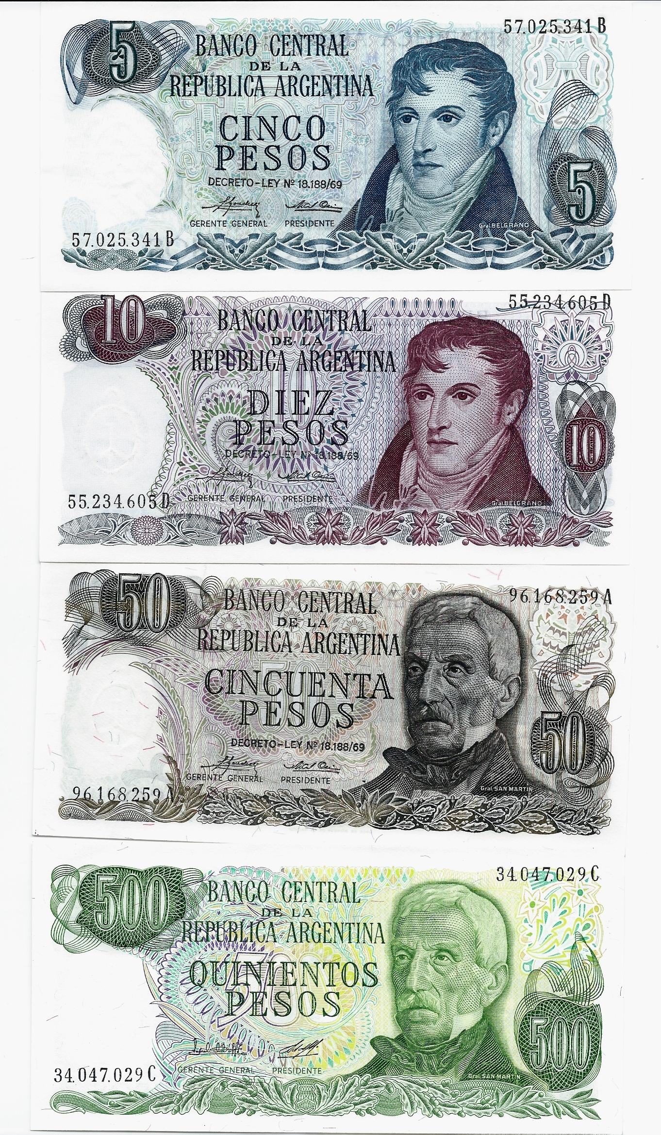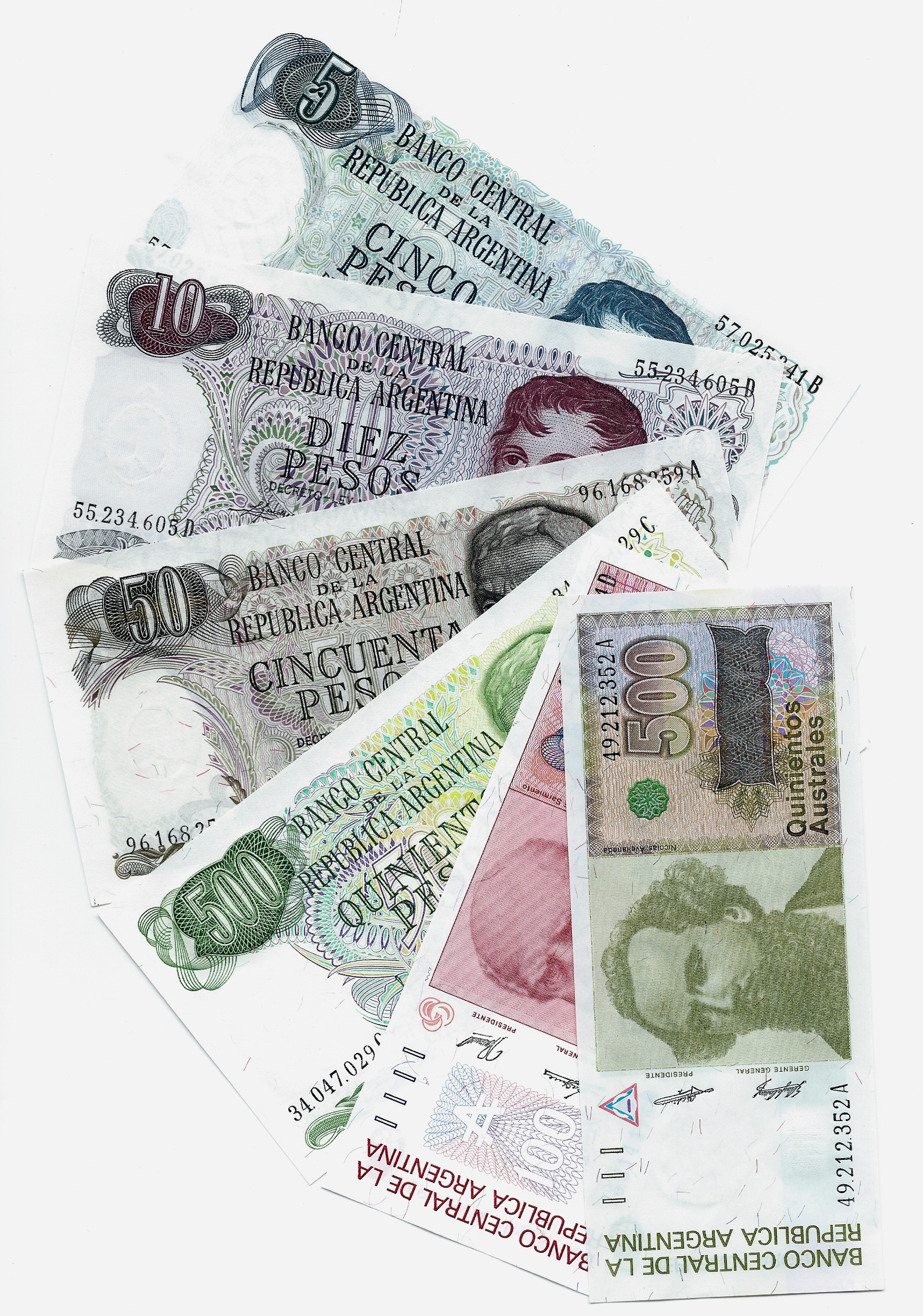 Набор из 6 банкнот Аргентина "5, 10, 50, 500 песо, 100 и 500 аустраль" 1973 - 1990 год