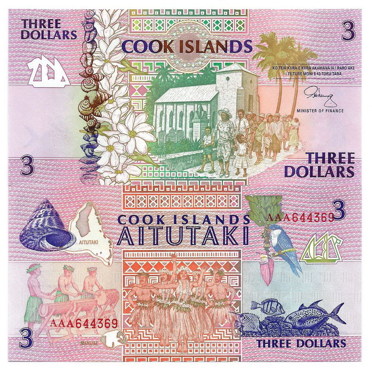 Острова Кука 3 доллара 1992 г. (Pick 7) UNC